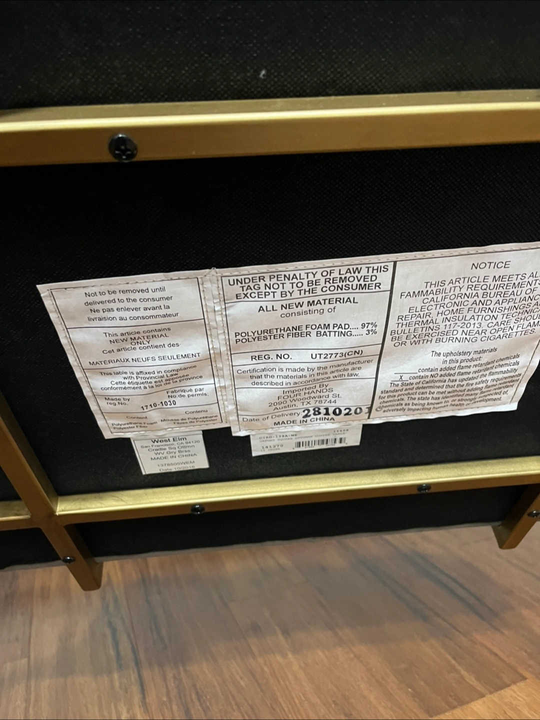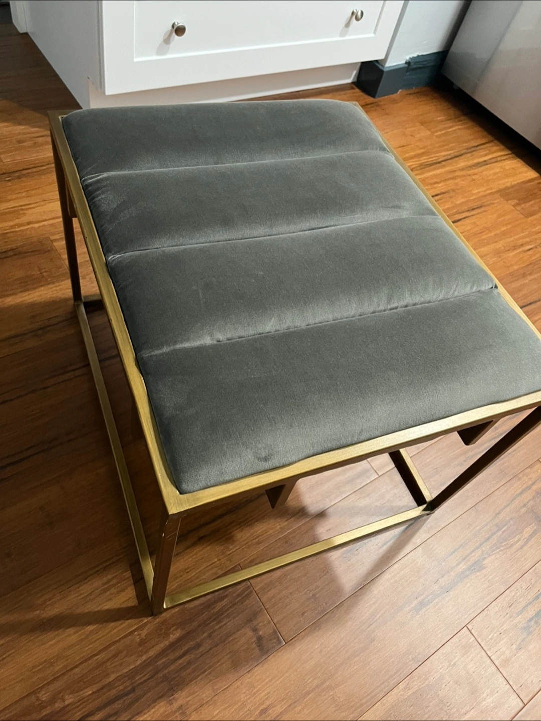 West Elm Ottoman Foot Stool Chair Gray Gold