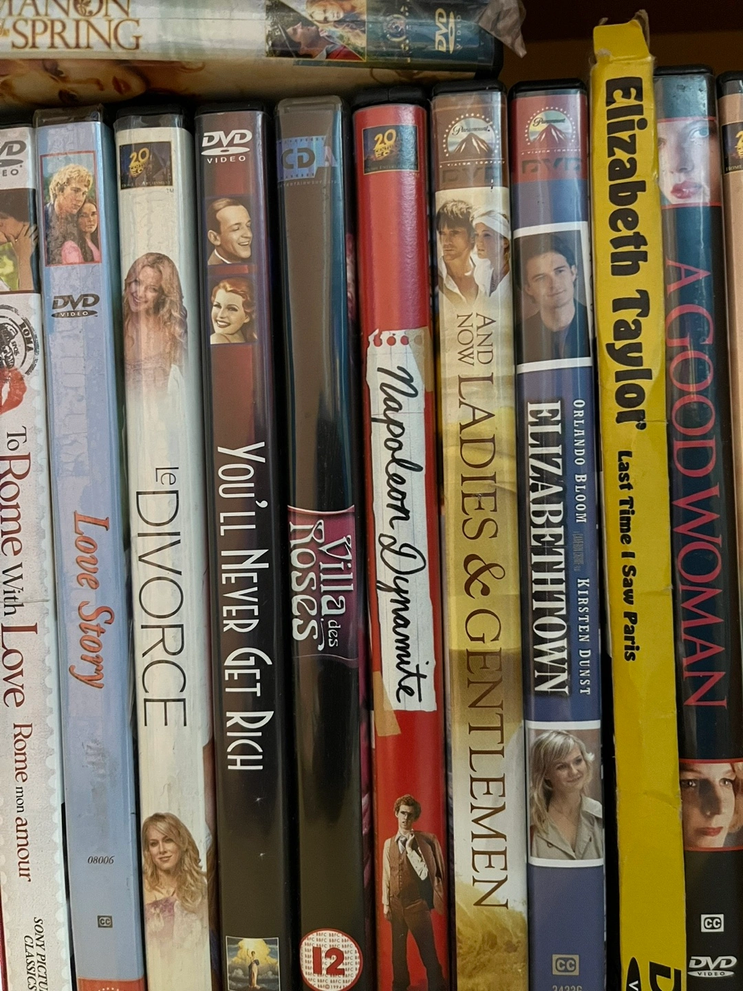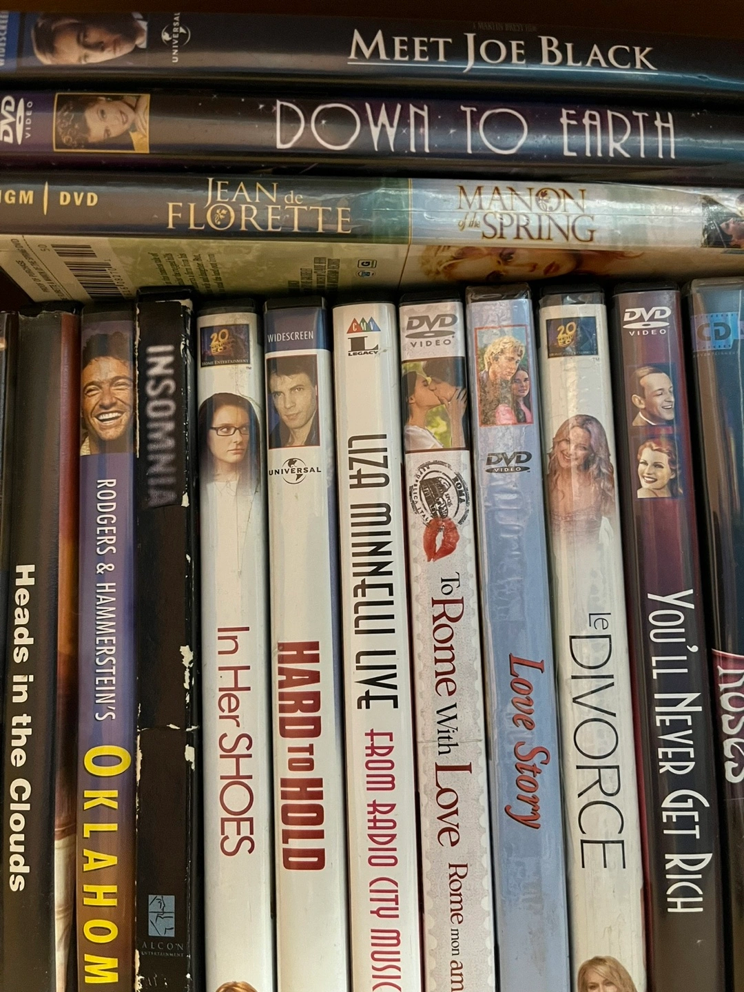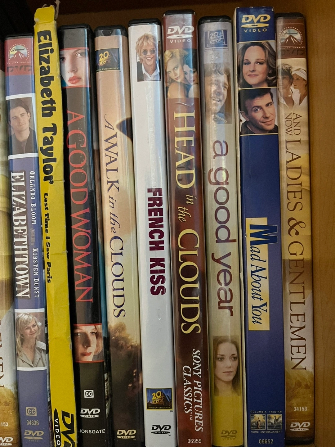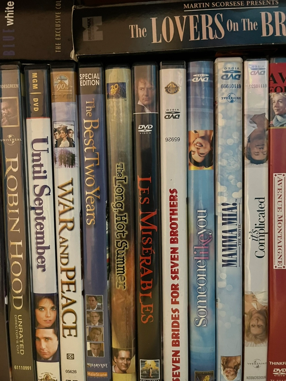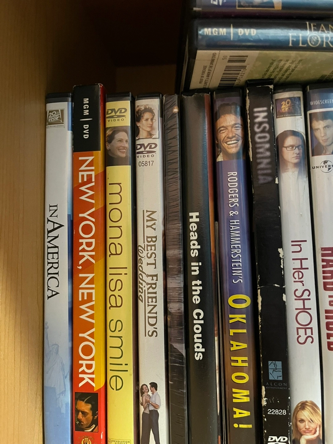 20A collection of various DVDs. Titles like "In America", "New York, New York", and "Mamma Mia". A calming activity for a rainy afternoon.