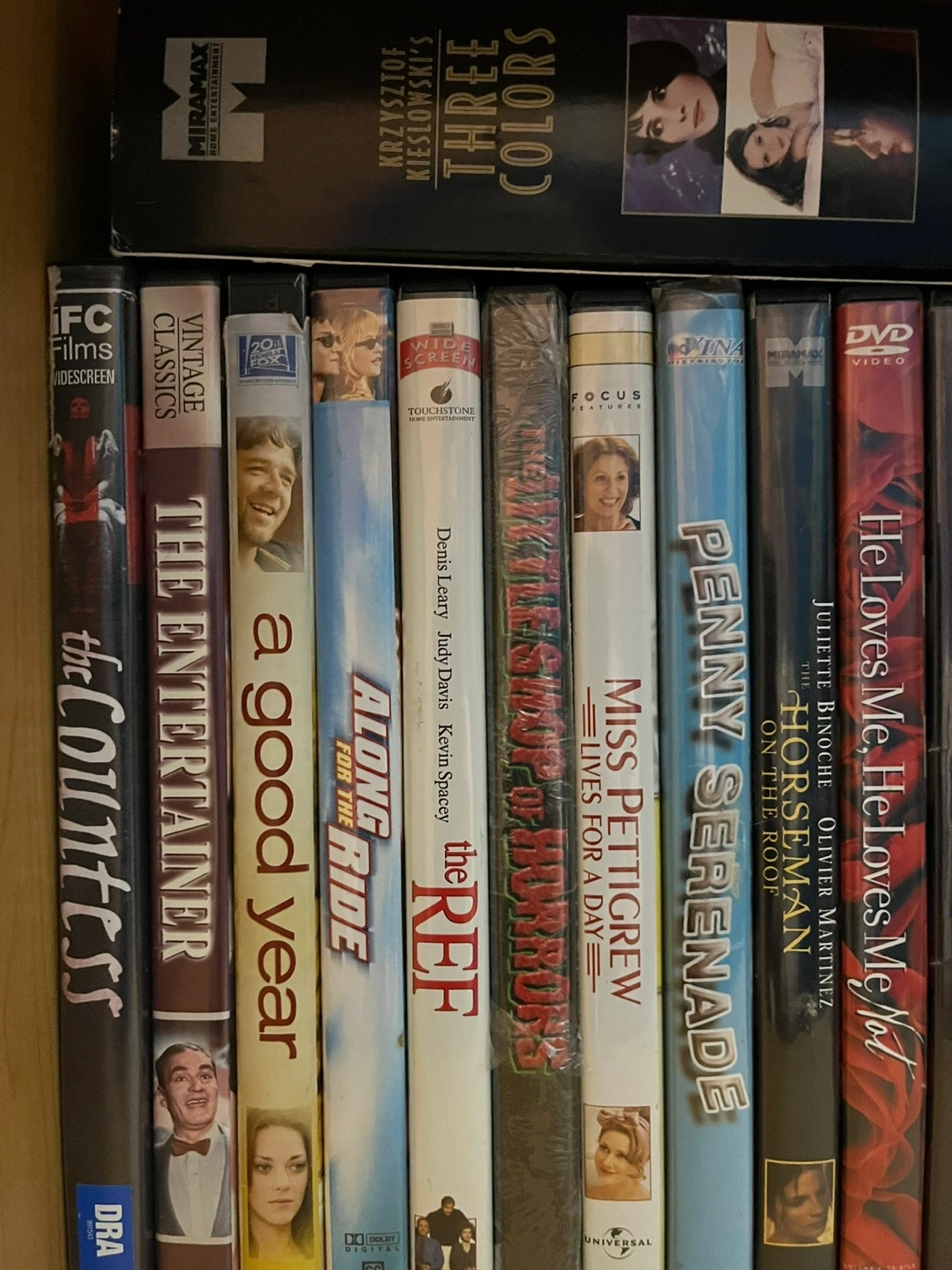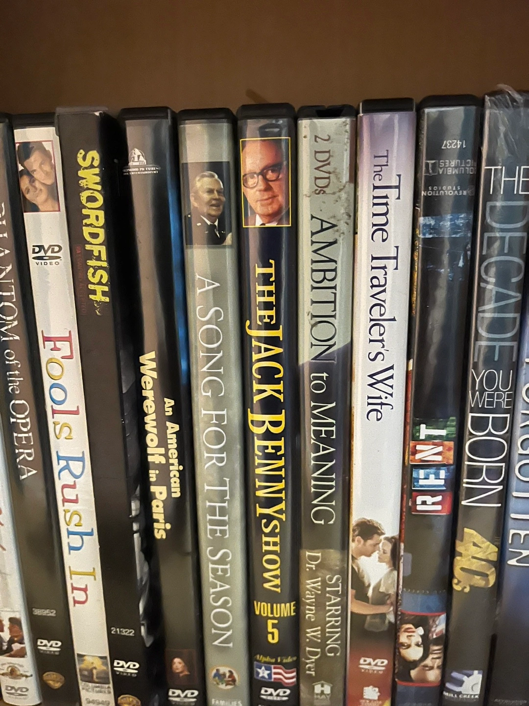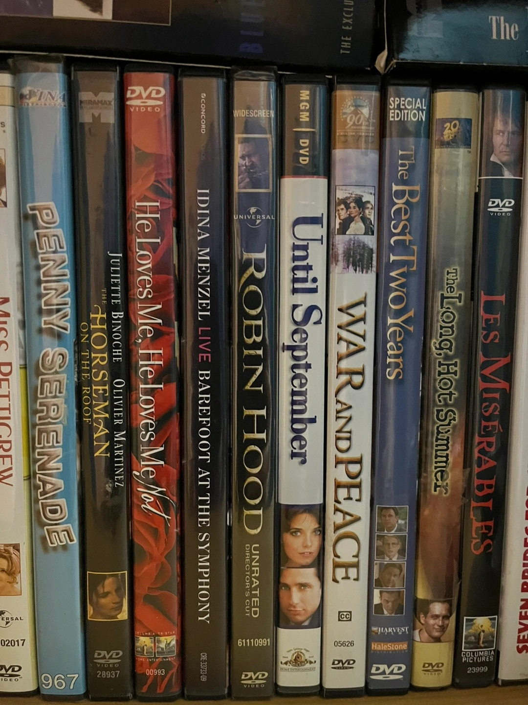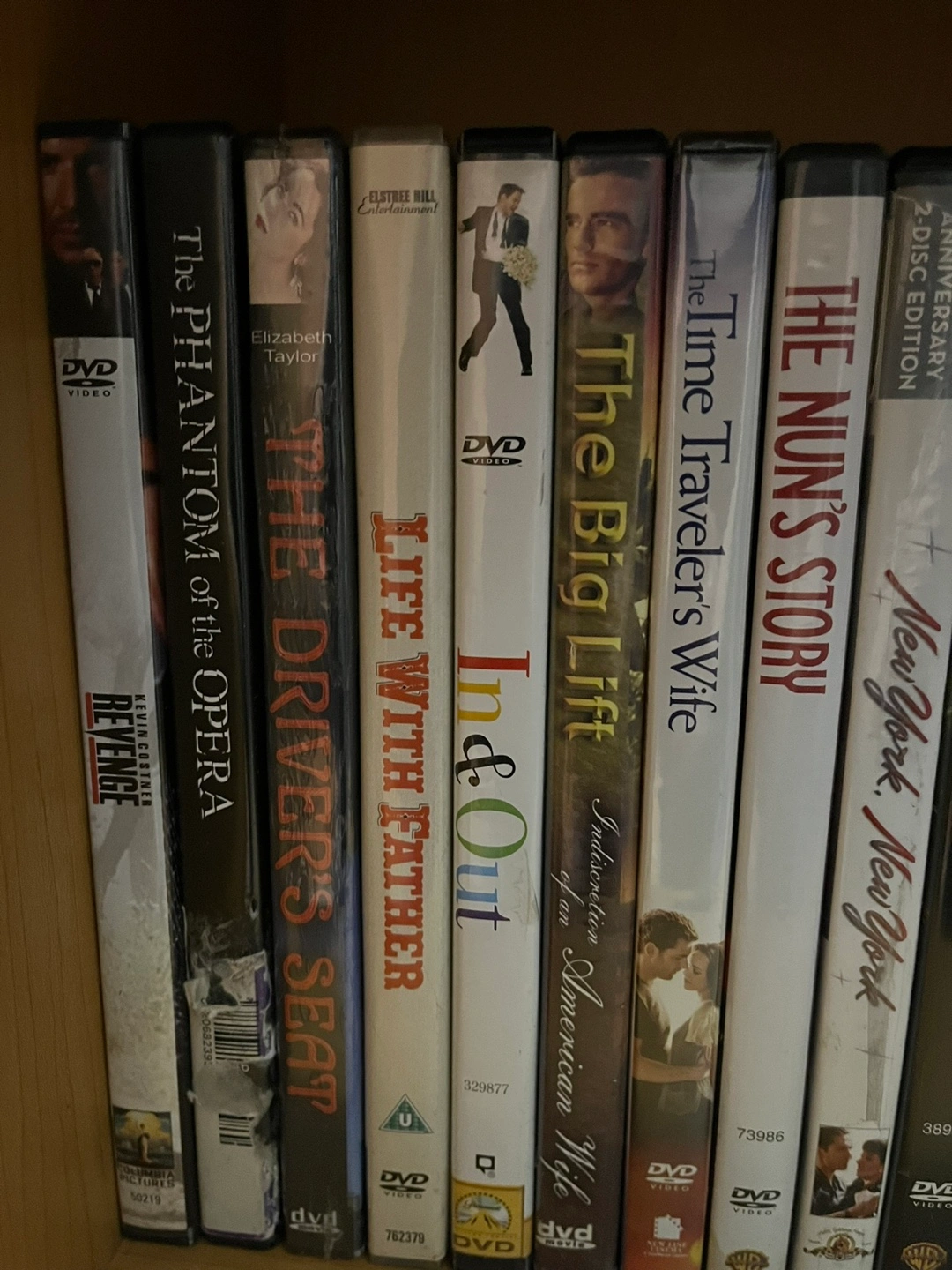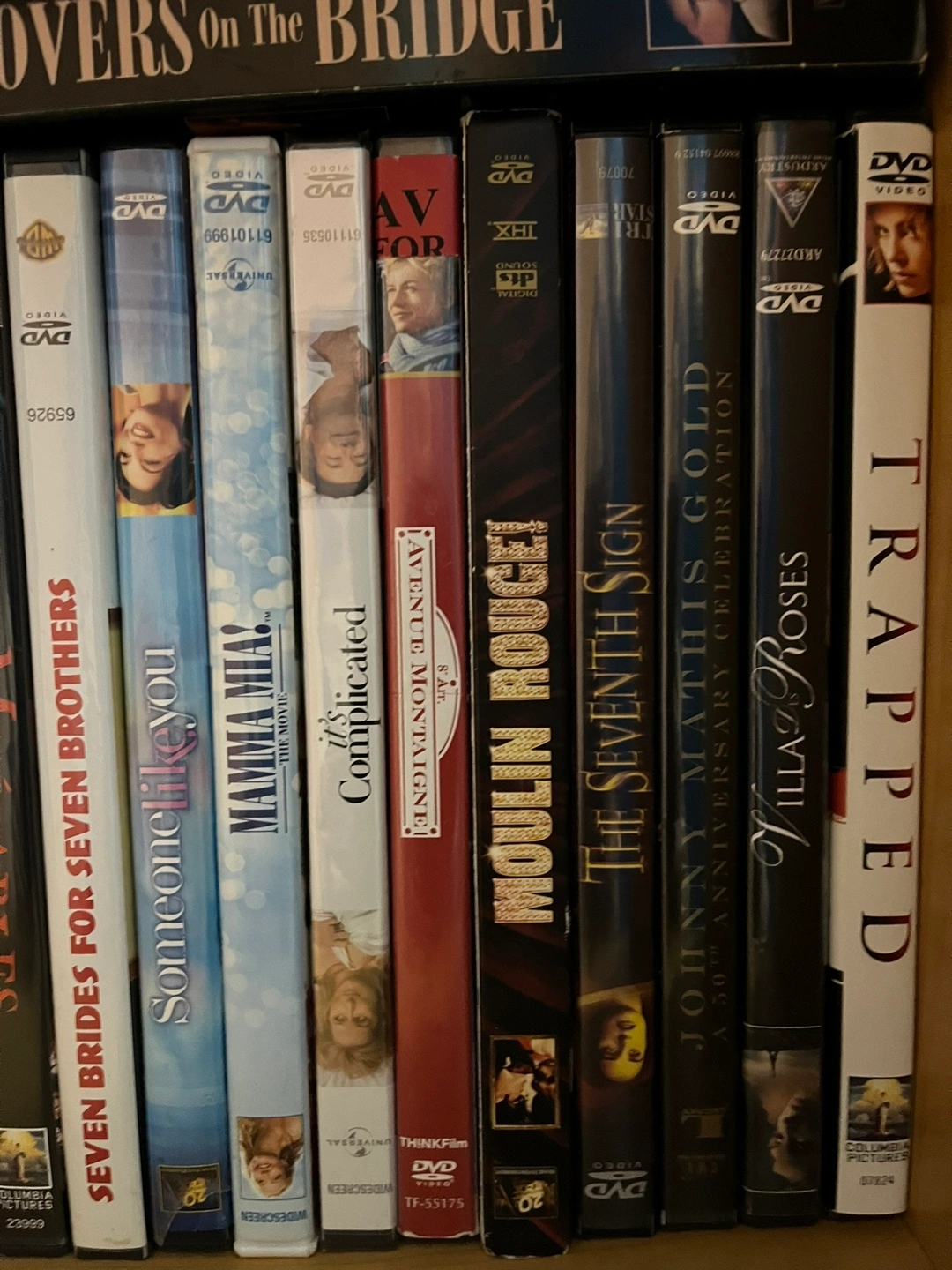 20A collection of various DVDs. Titles like "In America", "New York, New York", and "Mamma Mia". A calming activity for a rainy afternoon.