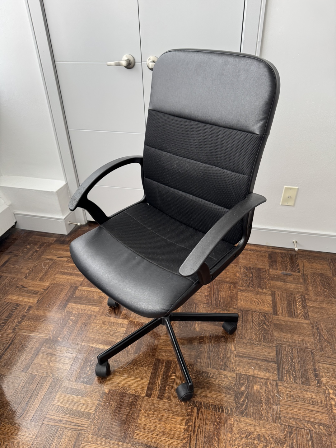 1 / 41 / 4Buy & SellBlack Swivel Office ChairBlack Swivel Office ChairFreeChair with armrests. Features a black mesh cushioned seat and back. Base with wheels. Can adjust height. From IKEAConditionOkayWHERE TO MEET40 Alexander StreetView MapSELLERverifiedRachelChurch and Wellesley21414 reviews3 chats·0 favorites·65 viewsSEND CHAT TO SELLERHi Rachel! I’m interested in your listing.Hi Rachel! I’m interested in your listing.Get the Karrot app to chatSign In to chat