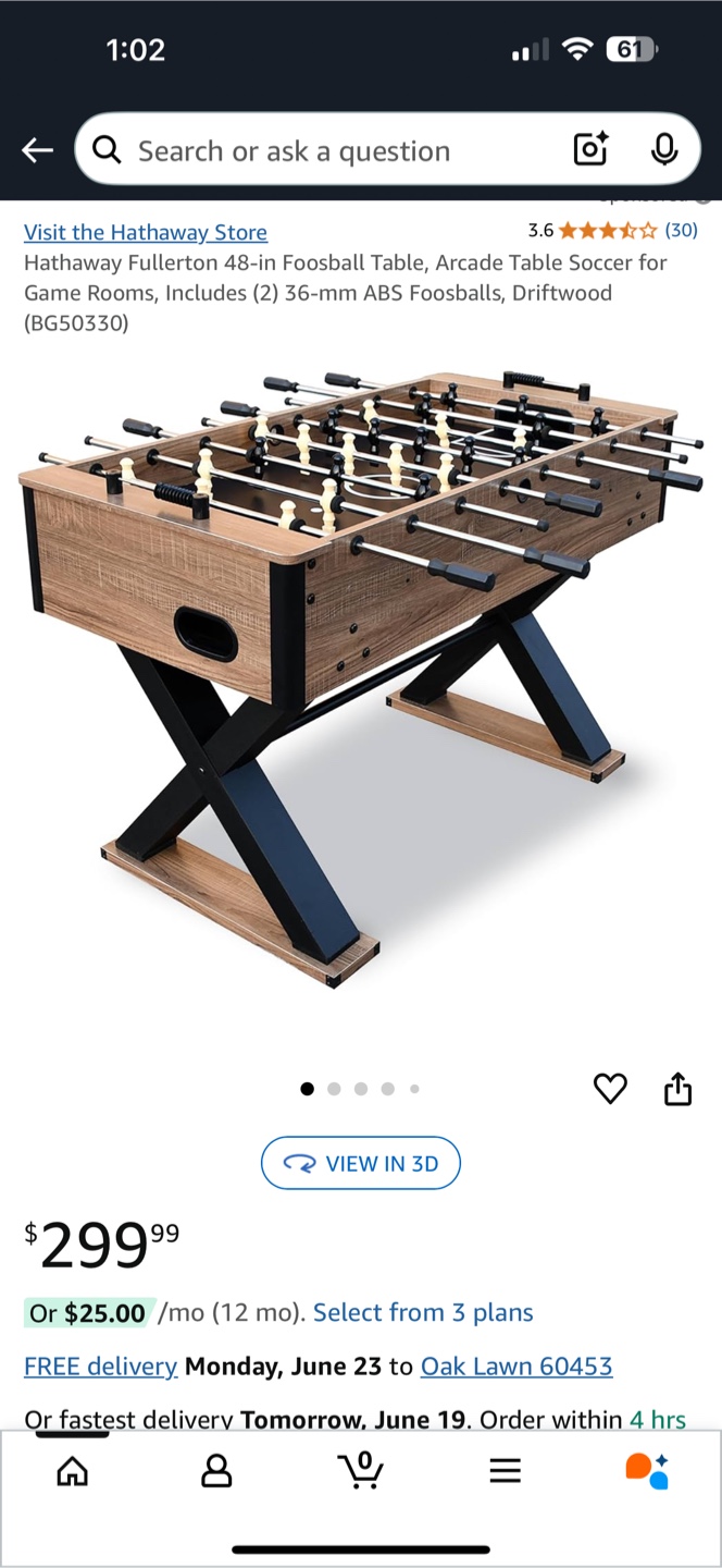1 / 31 / 3Buy & SellHathaway Fullerton Foosball TableHathaway Fullerton Foosball Table$230Foosball table with a wood finish. Features black and tan figures. Makes a great addition to any game room for hours of enjoyment.ConditionLike newWHERE TO MEET95th and HWY WalgreensView MapSELLERverifiedAleOak Lawn781 review0 chats·0 favorites·8 viewsSEND CHAT TO SELLERHi Ale! I’m interested in your listing.Hi Ale! I’m interested in your listing.Get the Karrot app to chatSign In to chat