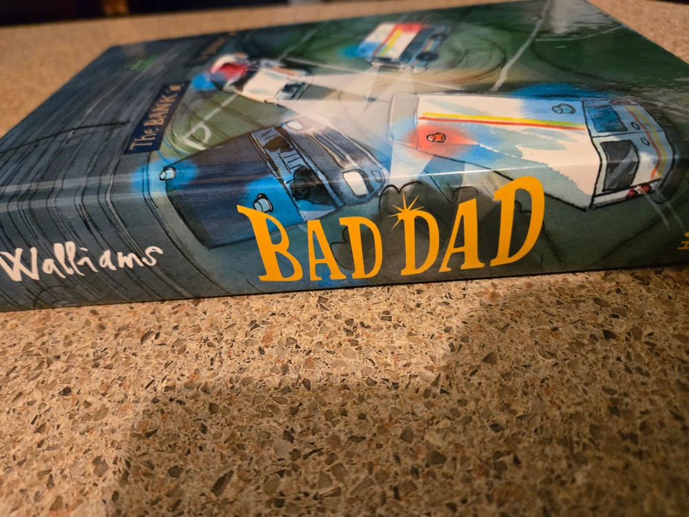 A book with a captivating cover. The title is written in large, bold letters. The book's title is Bad Dad. A great book to read while relaxing on your couch.