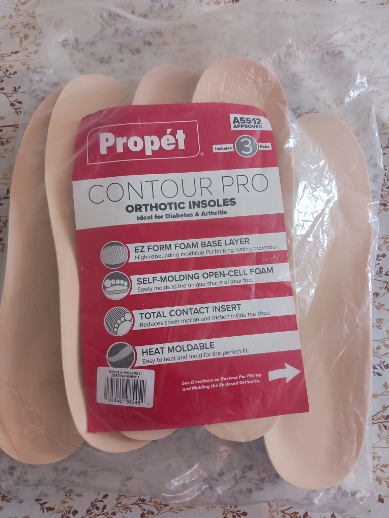 Selling Propet Contour Pro Orthotic Insoles, size women's 11. These insoles are ideal for diabetes & arthritis. They feature an EZ form foam base layer and self-molding open-cell foam. They also have a total contact insert and are heat moldable for the perfect fit!