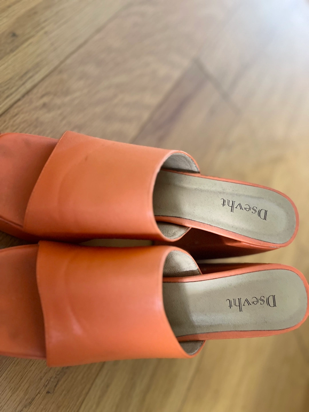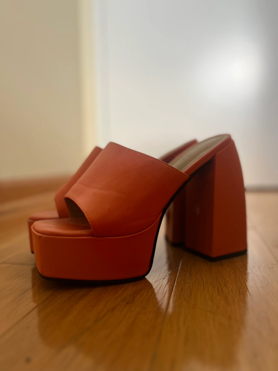 These stylish D’sevlht platform heels are a vibrant orange color! They're perfect for adding a pop of color to any outfit
