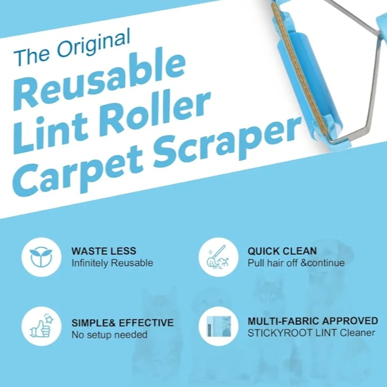 Keep your home fur-free with this StickyRoot Lint Roller! It's a reusable pet hair removal tool that's simple and effective. The advanced head design easily collects dust and pet hair lint in seconds. It has an ergonomic handle design and is washable for eco-smart cleaning