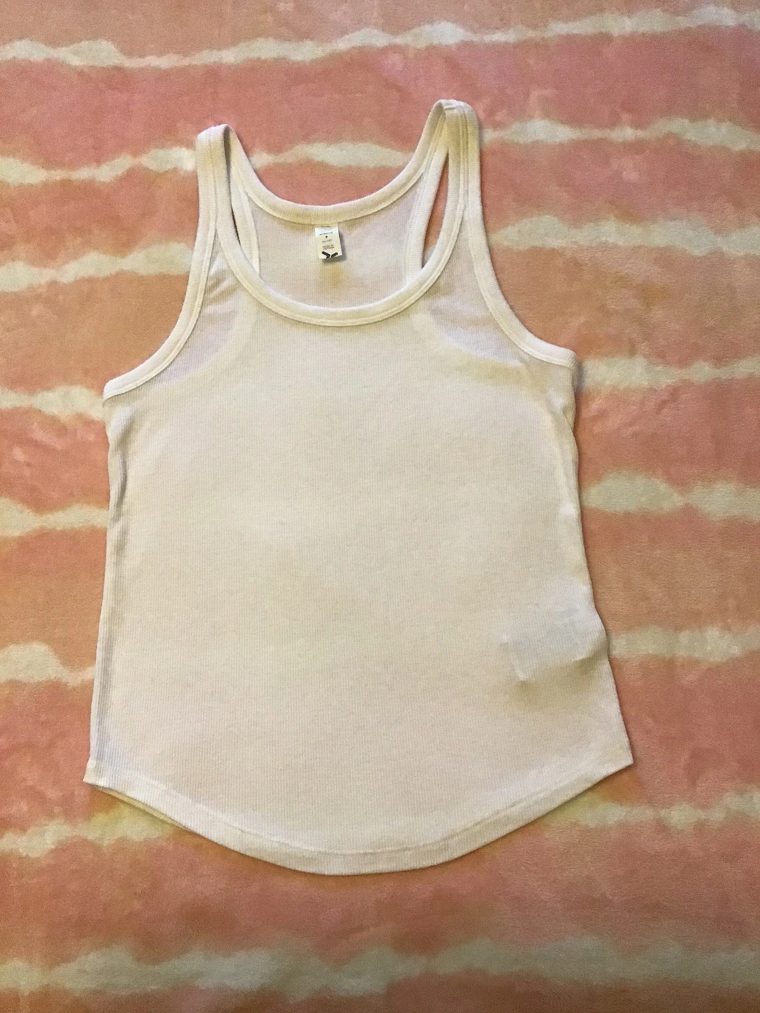 Here's a white tank top from Old Navy! It's a size S and features their GO-DRY ULTRALITE fabric. Perfect for staying cool and comfortable! 🤩