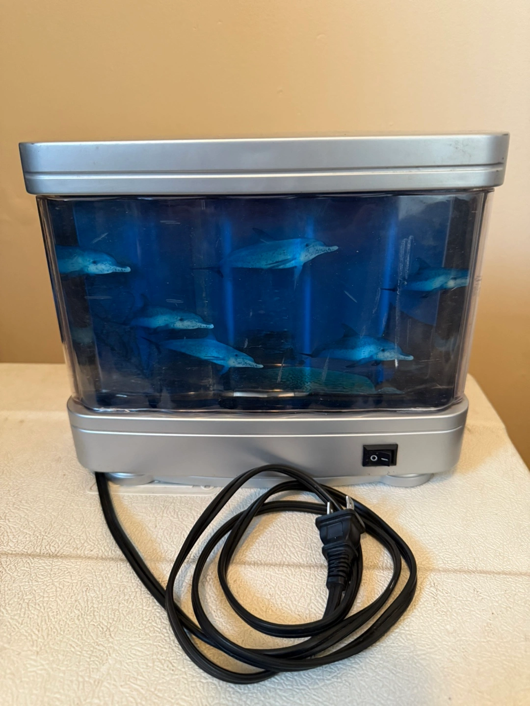 Add a touch of whimsy to any room with this charming dolphin aquarium lamp! The playful dolphins create a soothing and captivating display, perfect for a kid's room or anyone who loves marine life