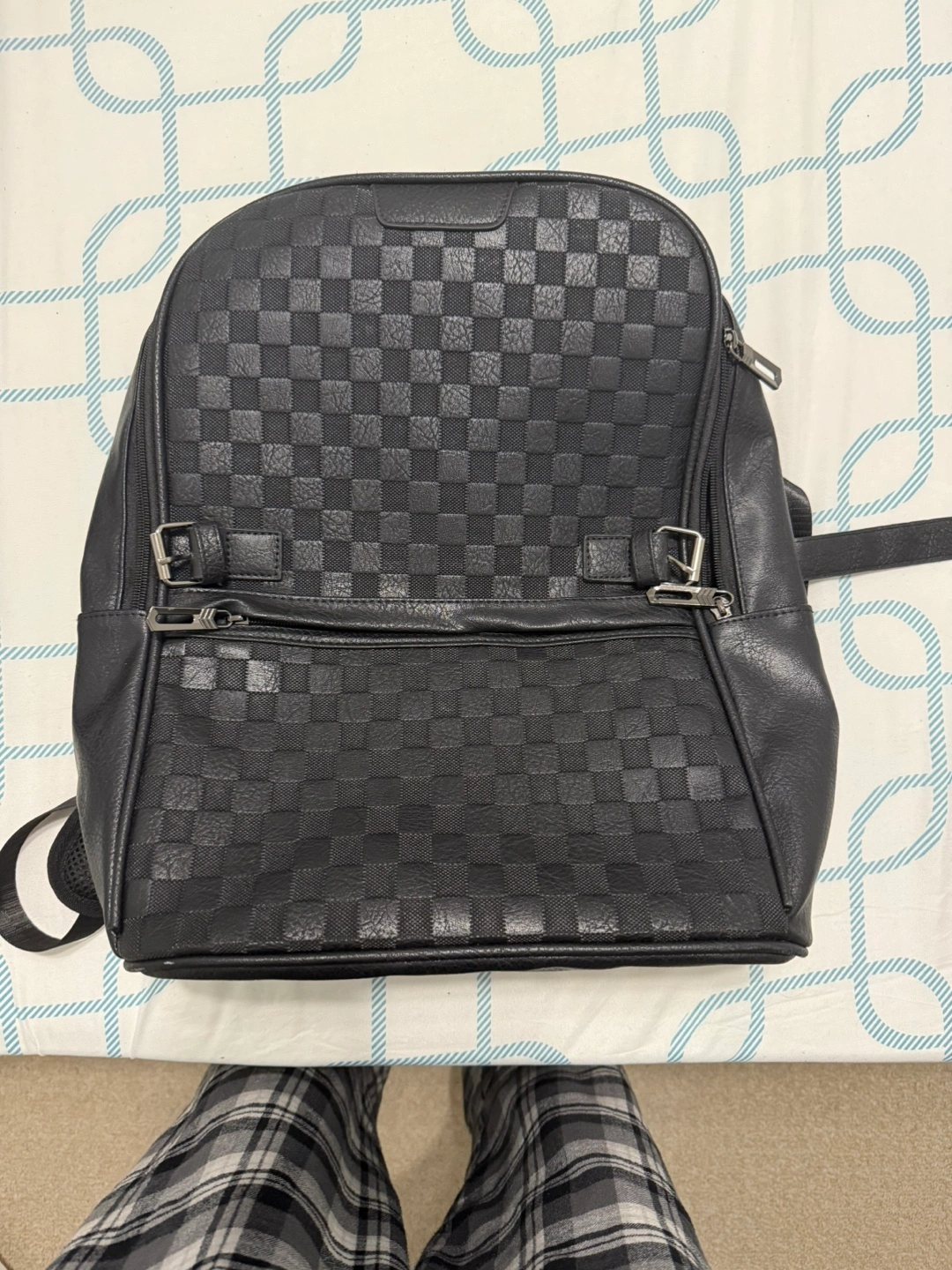 Black Checkered Pattern Backpack