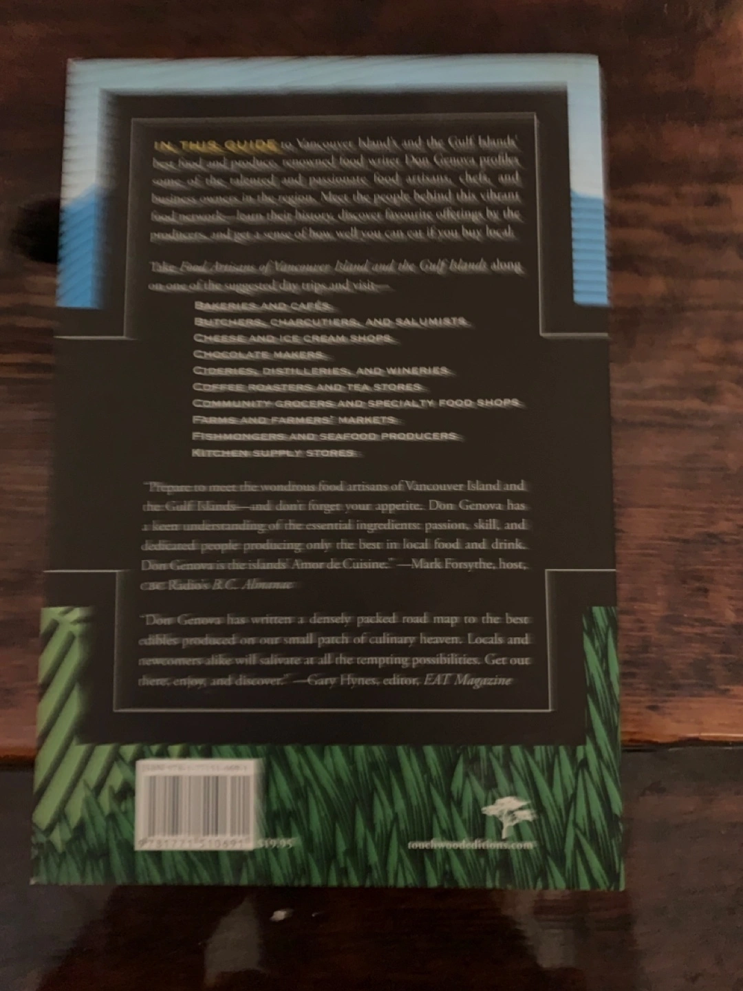 Travelling to BC this summer or focusing on buying Canadian? This excellent book will introduce you to some of the very best Food Artisans of Vancouver Island and the Gulf Islands.