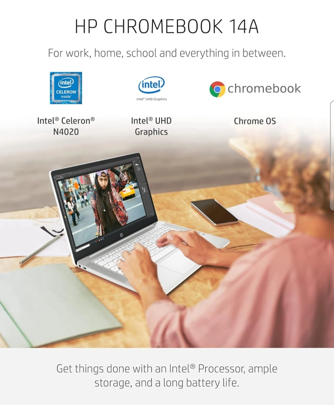 Selling an HP Chromebook 14A, perfect for work, home, or school! It features an Intel Celeron N4020 processor, Intel UHD Graphics, and runs on Chrome OS. The 14-inch FHD micro-edge display provides stunning visuals with anti-glare. It has 4GB DDR4 RAM and 32GB eMMC storage. It also supports SuperSpeed USB Type-A and Type-C. Get things done with ample storage and a long battery life newcondition no scratches