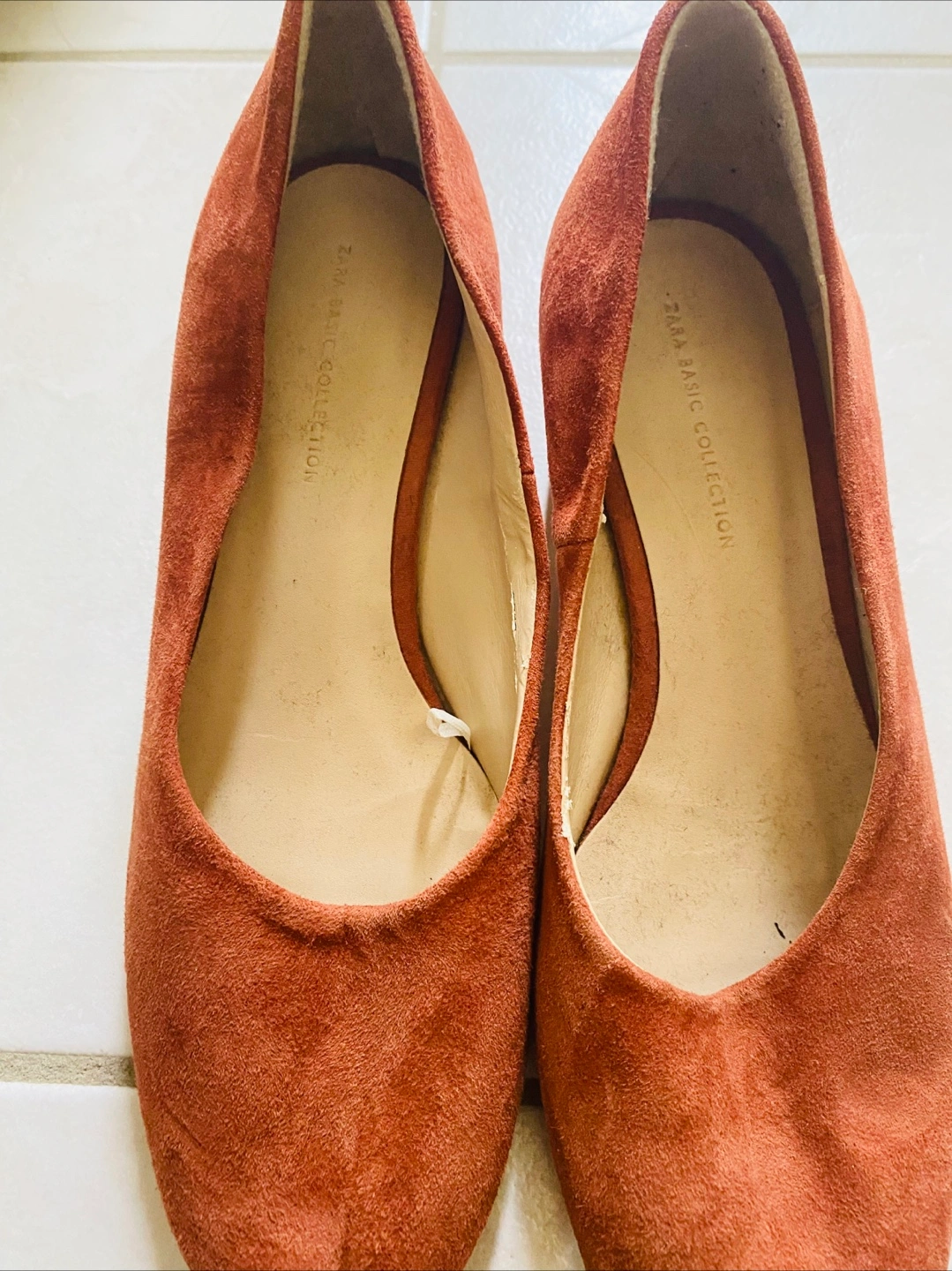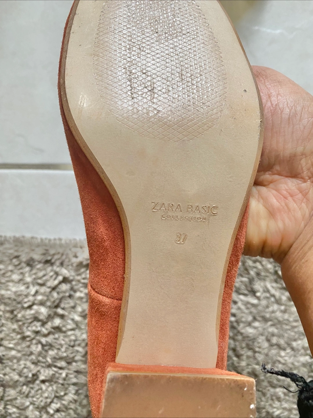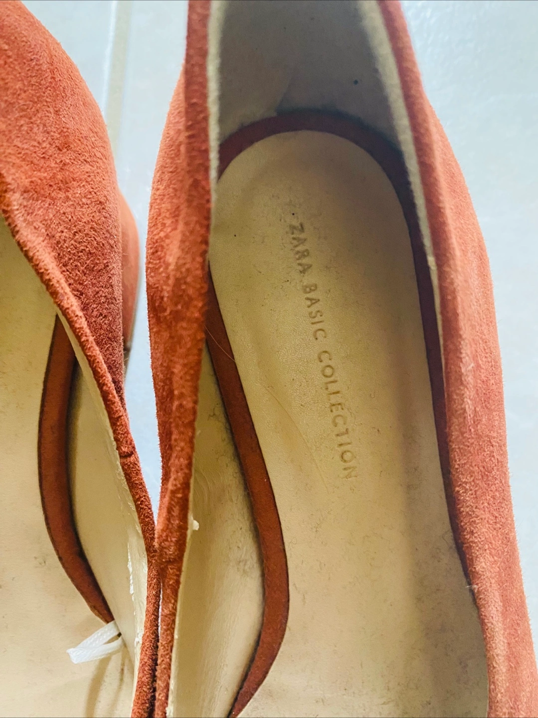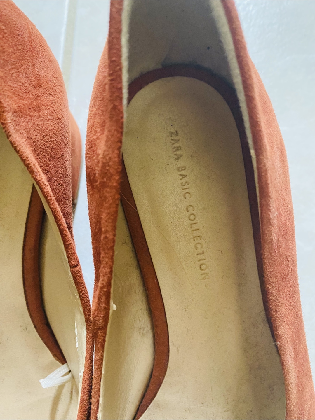 Selling a pair of Zara Basic Collection heels in size 37. They are a lovely terracotta colour and made of a soft suede material. Perfect for a night out or a special occasion!