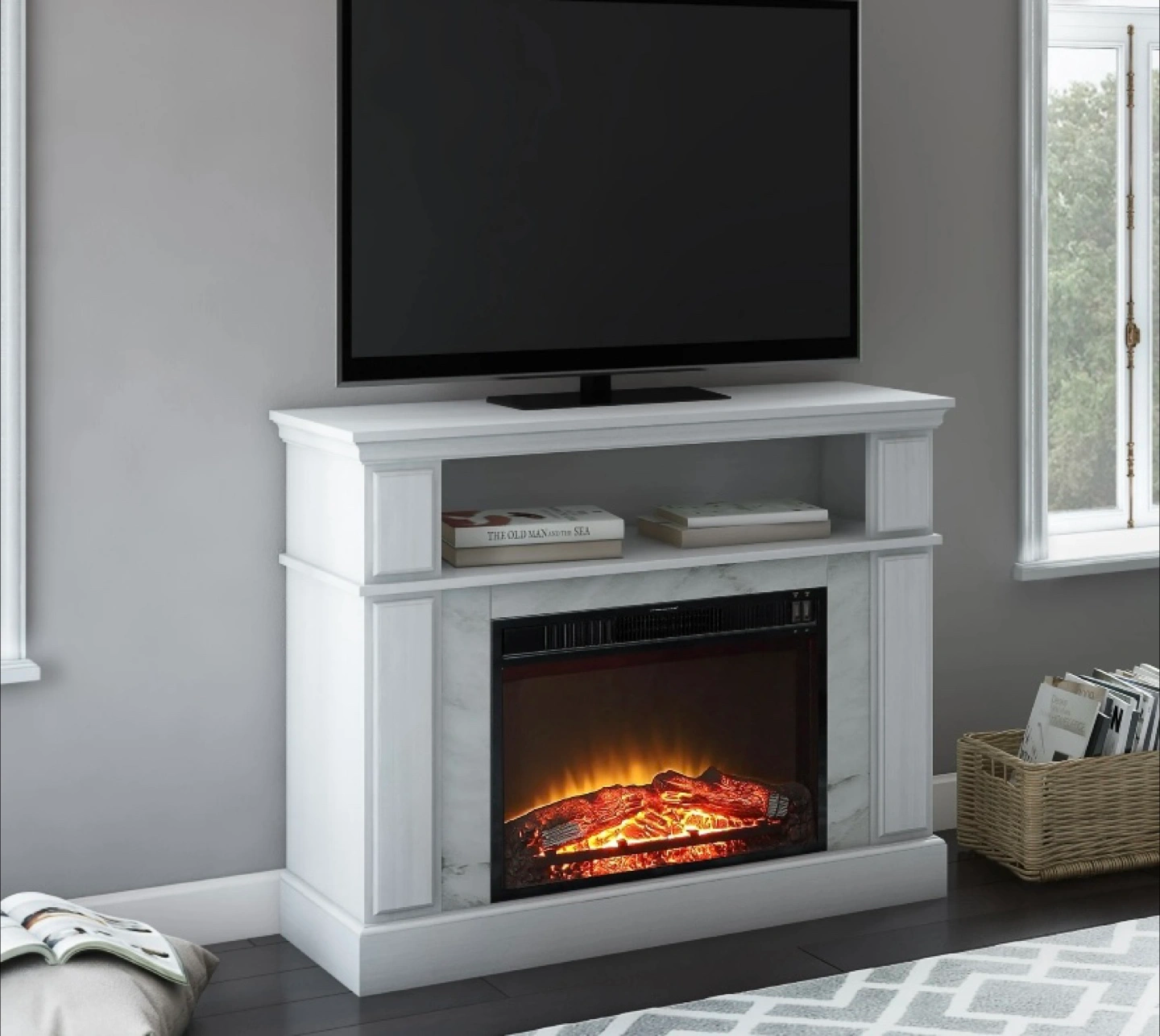 White Electric Fireplace TV Stand