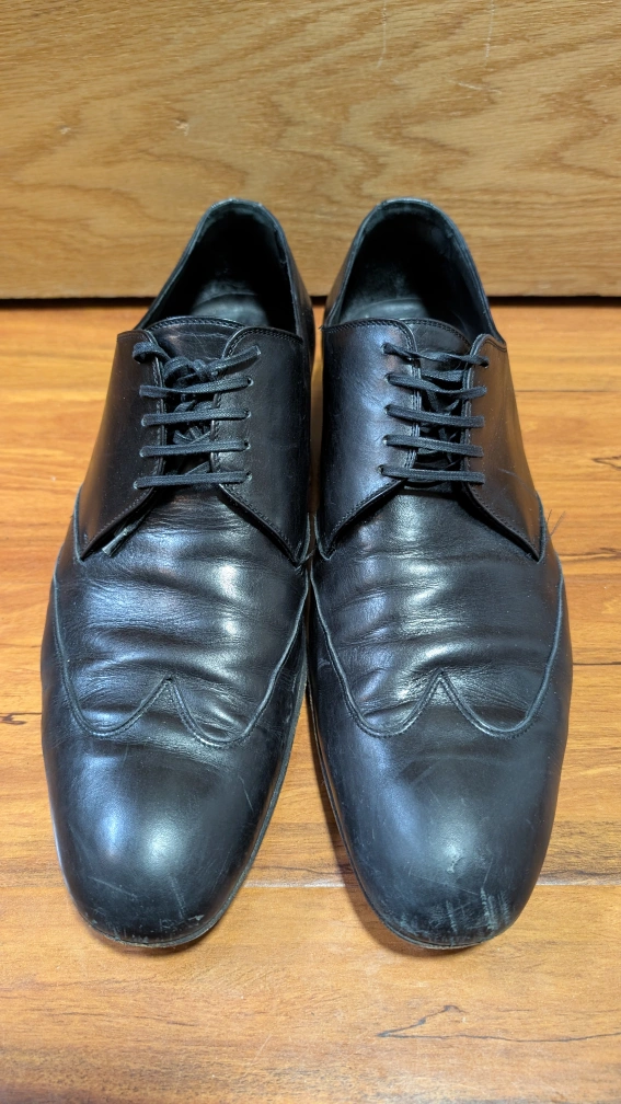 Selling a pair of black leather dress shoes. They show some signs of wear, as you can see in the photos. Perfect for a formal occasion. Size 10