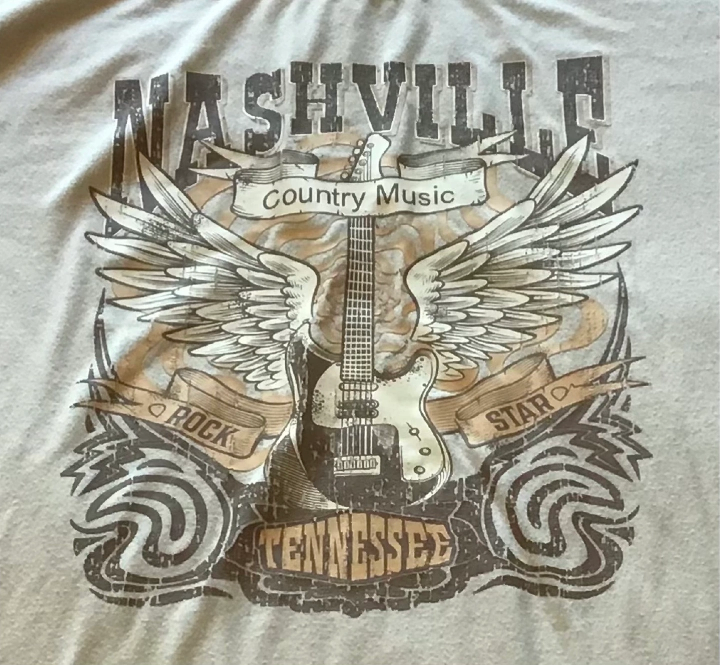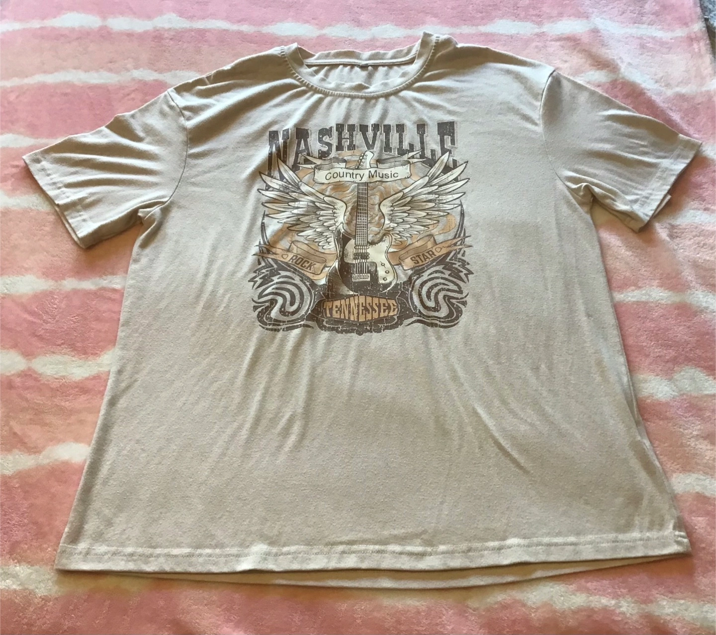 Here's a casual Nashville, Tennessee t-shirt! The graphic features a guitar with wings and says "Country Music, Rock Star". It's in great condition and ready for a new home 🤩