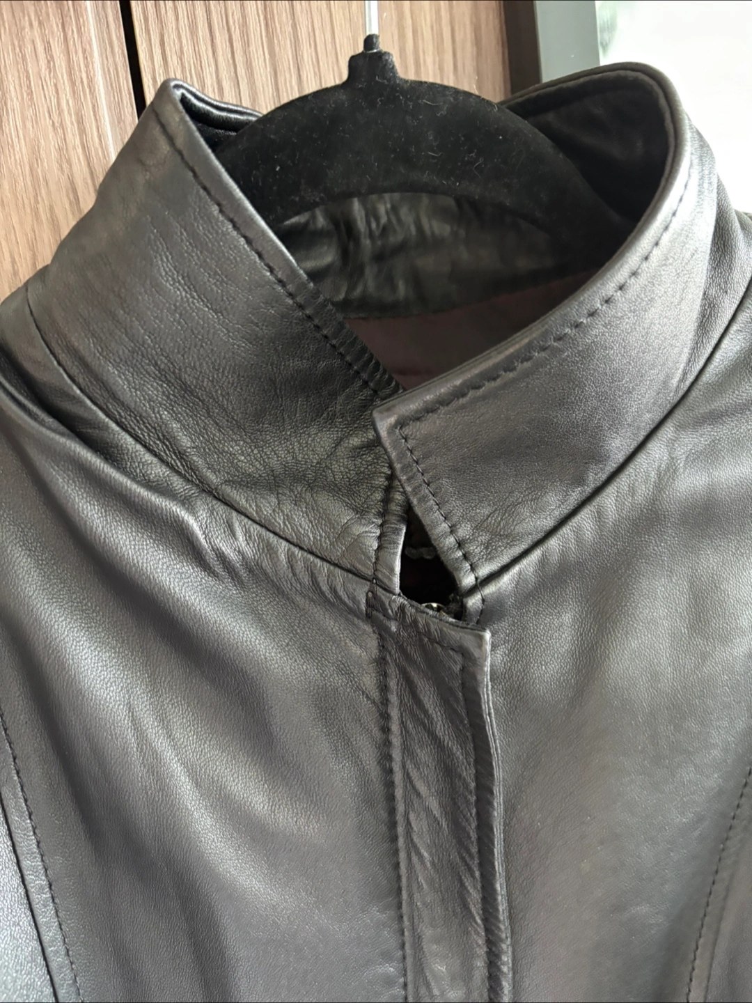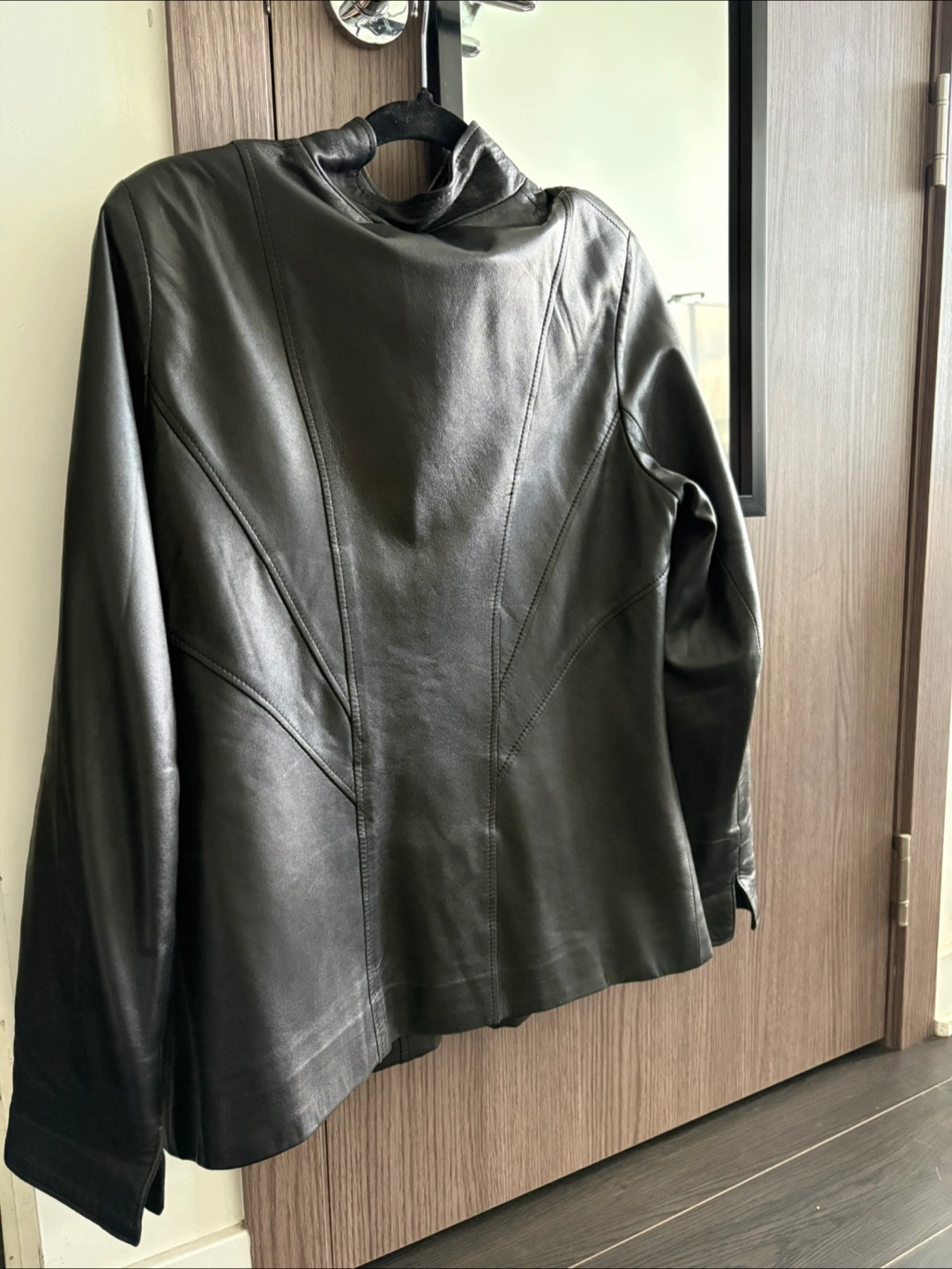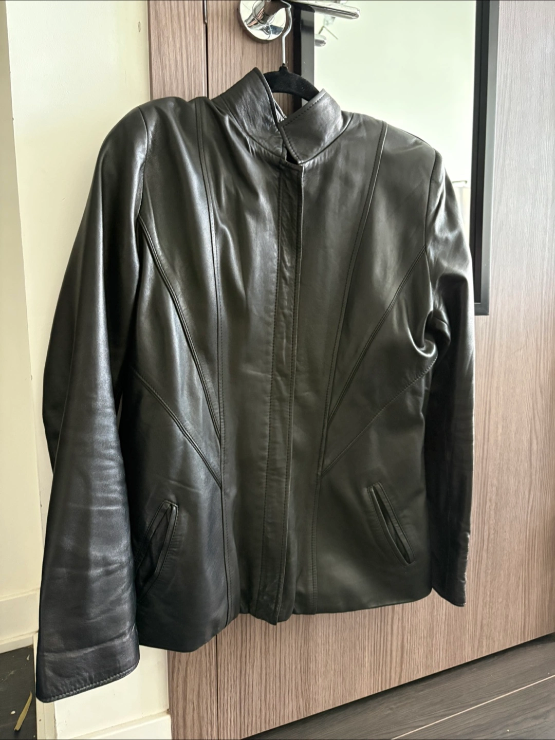 Selling a stylish leather jacket in size 46, fits L. It's in great condition and ready for a new home! Perfect for adding a touch of sophistication to any outfit
