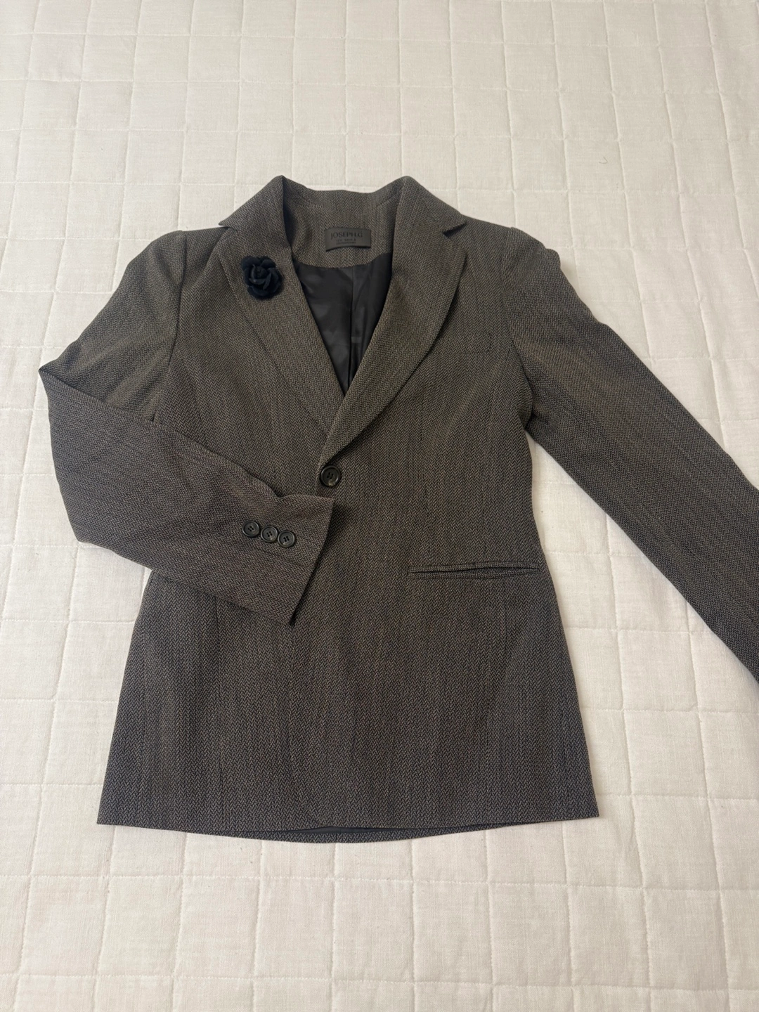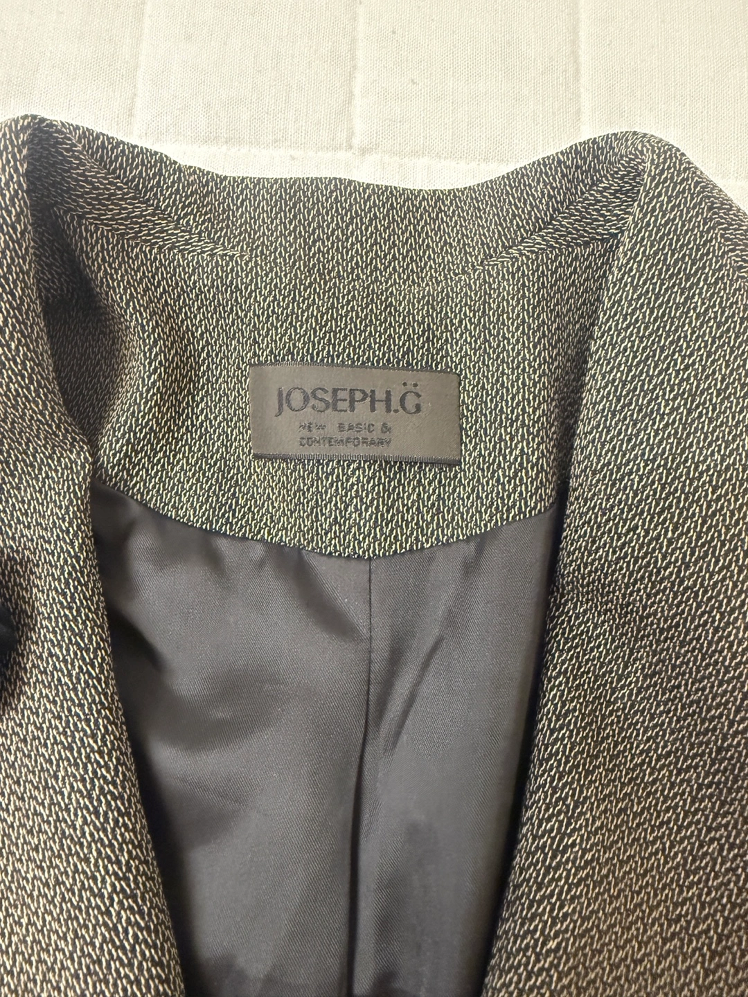 Here's a stylish women's blazer from JOSEPH.G. It's a contemporary piece with a unique pattern and a sleek design. The blazer is in great condition and ready to elevate your wardrobe!