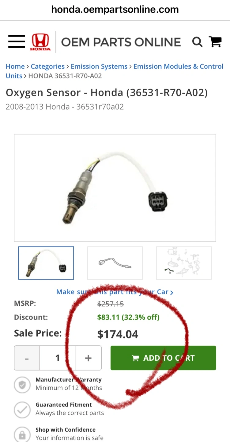 Selling a brand new Honda Genuine Parts oxygen sensor. It's still in the original box and has never been used. The part number is 36531-R70-A01. Perfect for anyone needing a replacement!