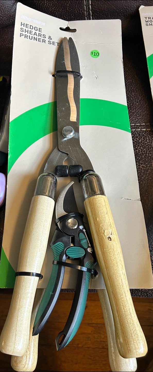 245Selling a new hedge shears and pruner set still in its original packaging. It's a great tool for maintaining your garden and keeping your hedges neat and tidy. The set includes both hedge shears and a pruner, making it versatile for different gardening tasks.
