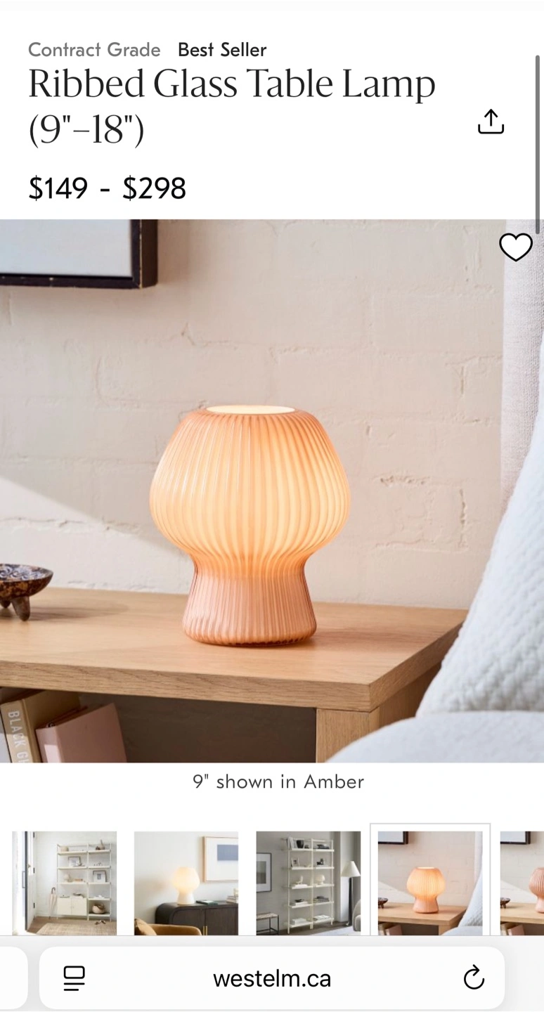 Buy & SellWest Elm Ribbed Glass Table LampWest Elm Ribbed Glass Table Lamp$89Selling a West Elm ribbed glass table lamp. It's in great condition and would look lovely in a room.ConditionNewWHERE TO MEETStarbucksView MapSELLERIsabelLawrence Park S211 review1 chats·3 favorites·45 viewsSEND CHAT TO SELLERHi Isabel! I’m interested in your listing.Hi Isabel! I’m interested in your listing.Get the Karrot app to chatSign In to chat