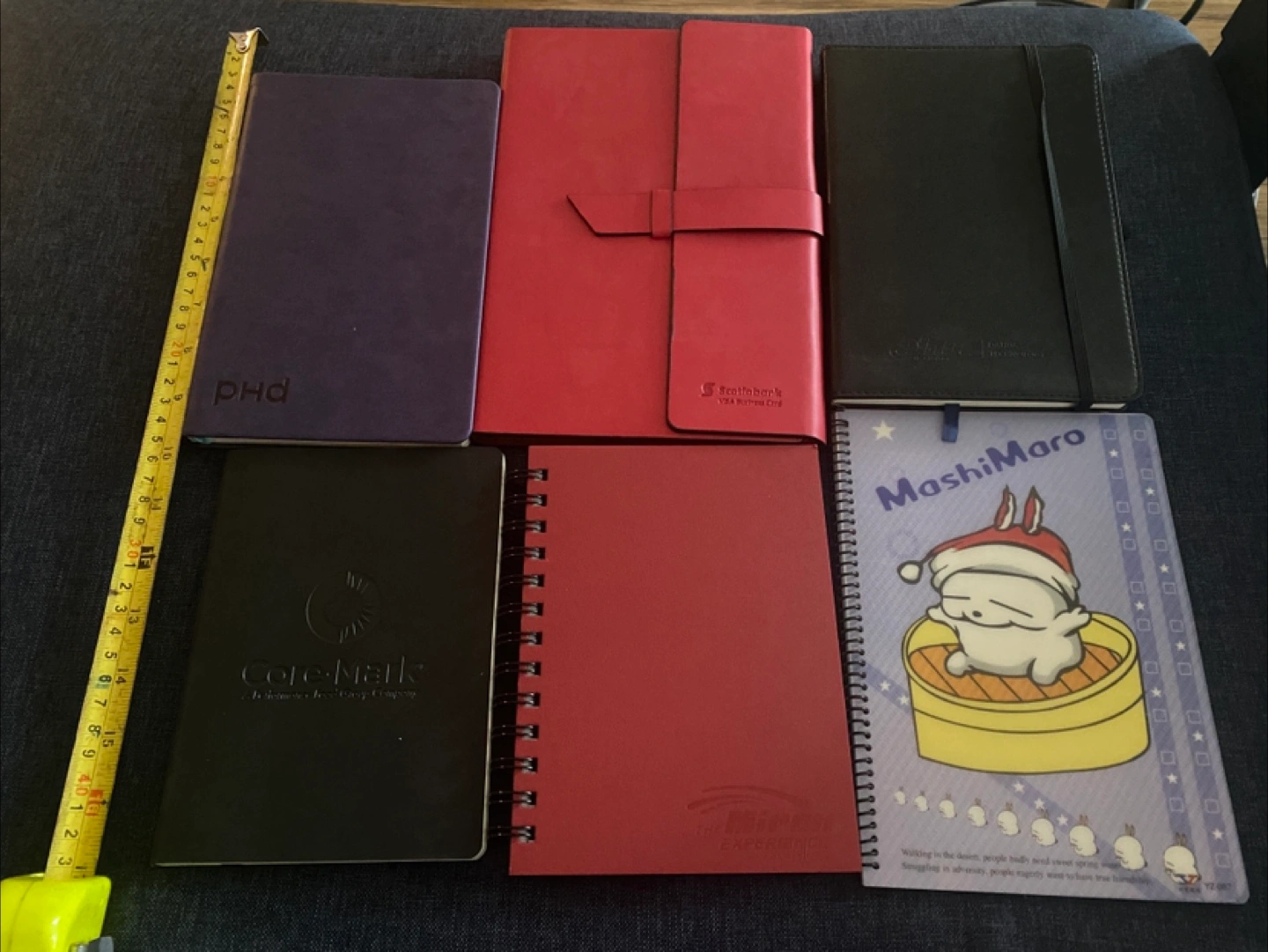 Selling a collection of notebooks and journals. Includes various sizes, colours, and styles. Great for school, work, or personal use! Some are spiral bound, others are hardcover. Get them all in one go, 10 in total