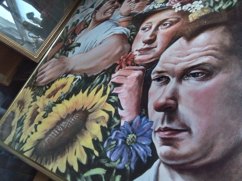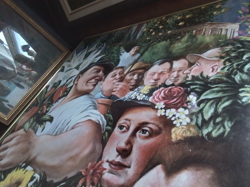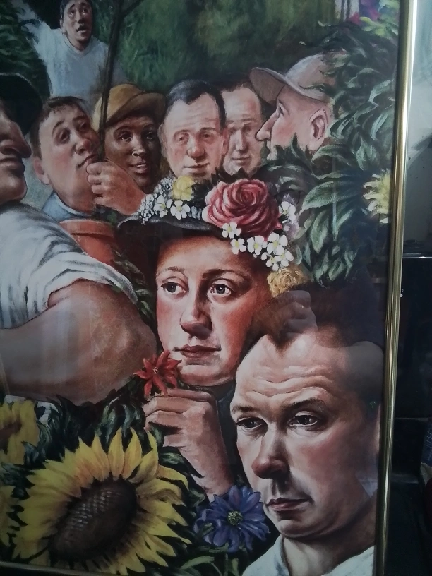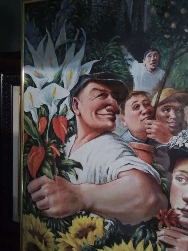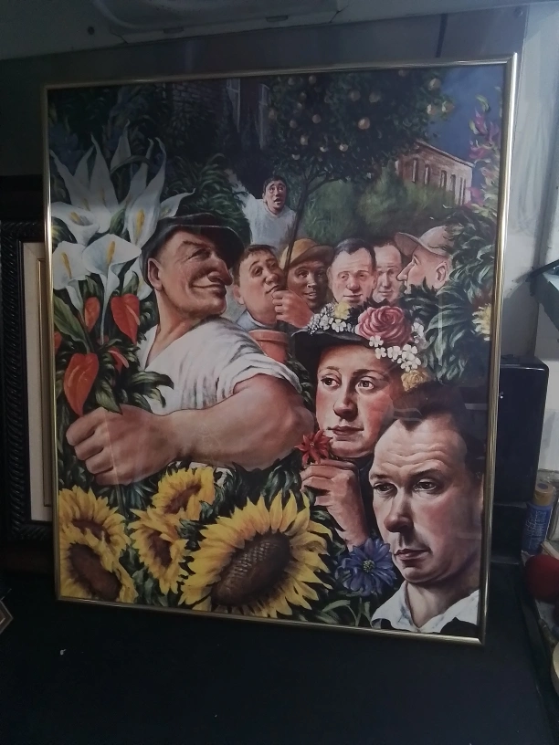 This Underground Tube Art Poster by Andrew Crocker is a vibrant piece that captures a unique artistic vision. The poster features a variety of figures and floral elements in a colourful tableau. Please note that this is a used item, showing some signs of wear. The poster is framed and ready to hang, bringing a touch of artistic flair to any room. Perfect for art lovers and collectors alike!