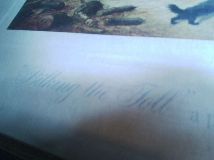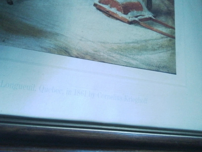 On the bottom of the art print ""Bilking The Toll" a painting of OLD CANADA painted at Longueuil, Quebec, in 1861 by Cornelius Krieghoff"