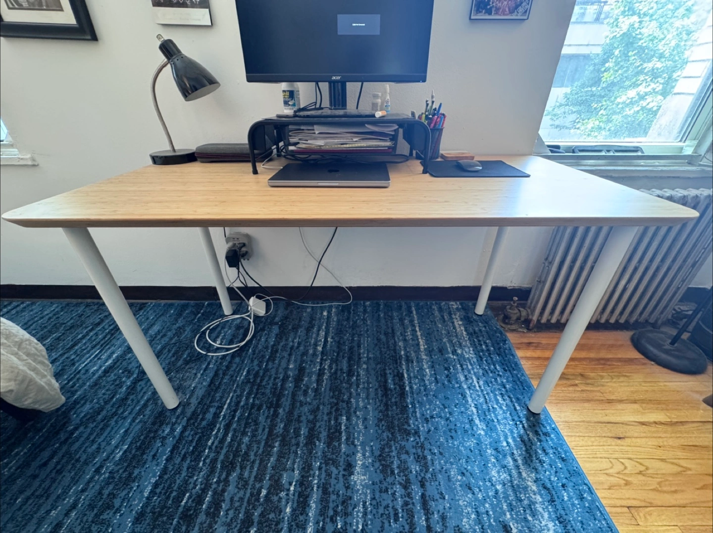 Selling a desk with a light wood top and white legs. It's in good condition and ready for a new home! Perfect for a home office or study space