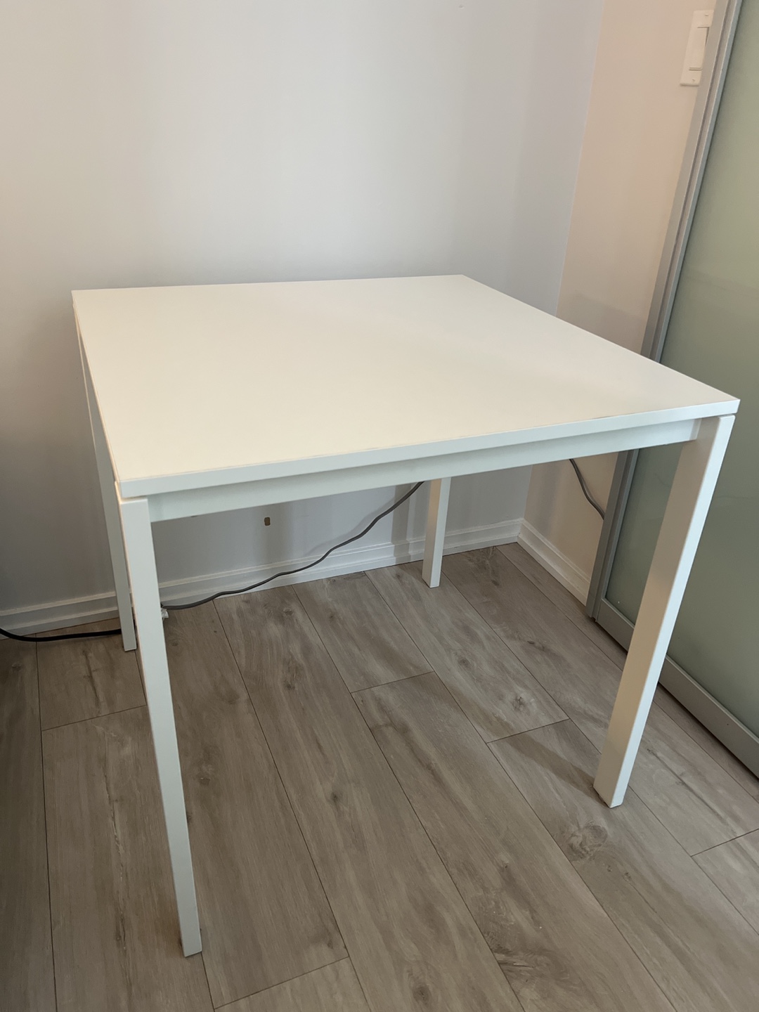 See photos for measurements. Great sturdy quality table. IKEA Melltorp table Pick up near bloor and Yonge. Table will need to be disassembled to move out of my condo.