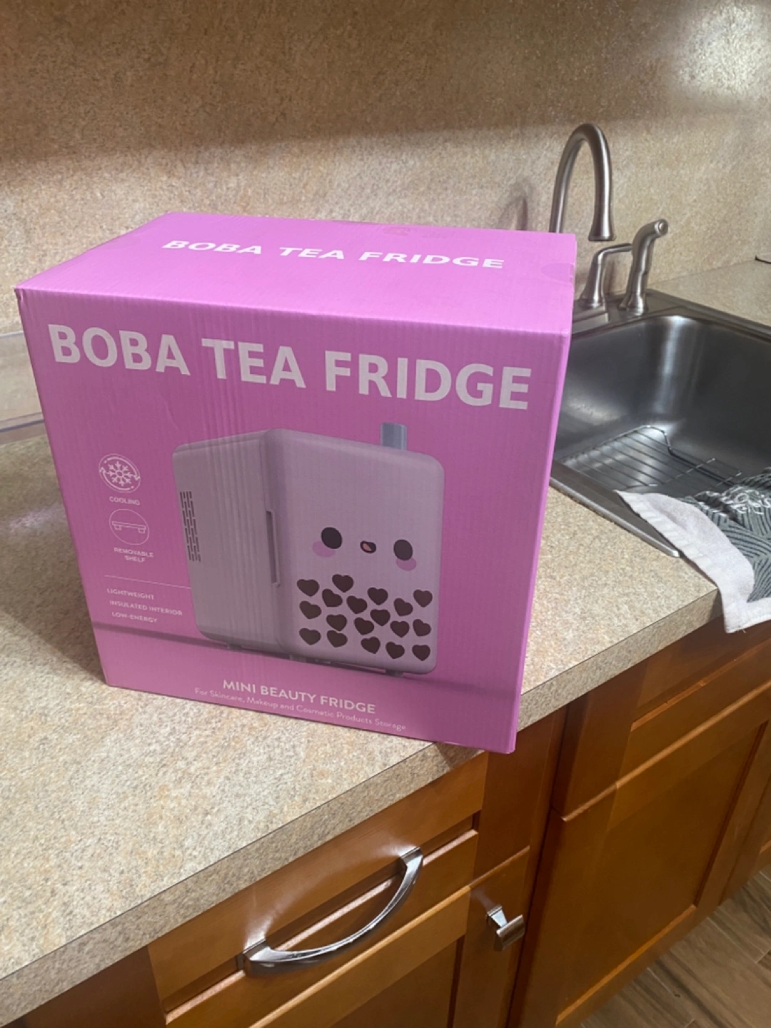 Selling a brand new BOBA TEA FRIDGE Mini Beauty Fridge! It's still in the box.
