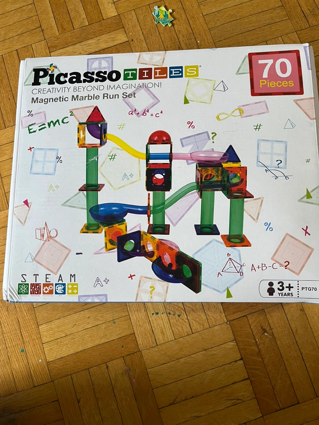 Selling a Picasso Tiles Magnetic Marble Run Set with 70 pieces! It's a great STEAM toy to encourage creativity and imagination in kids aged 3+. The set is in good condition and comes with the original box, ready for hours of fun!