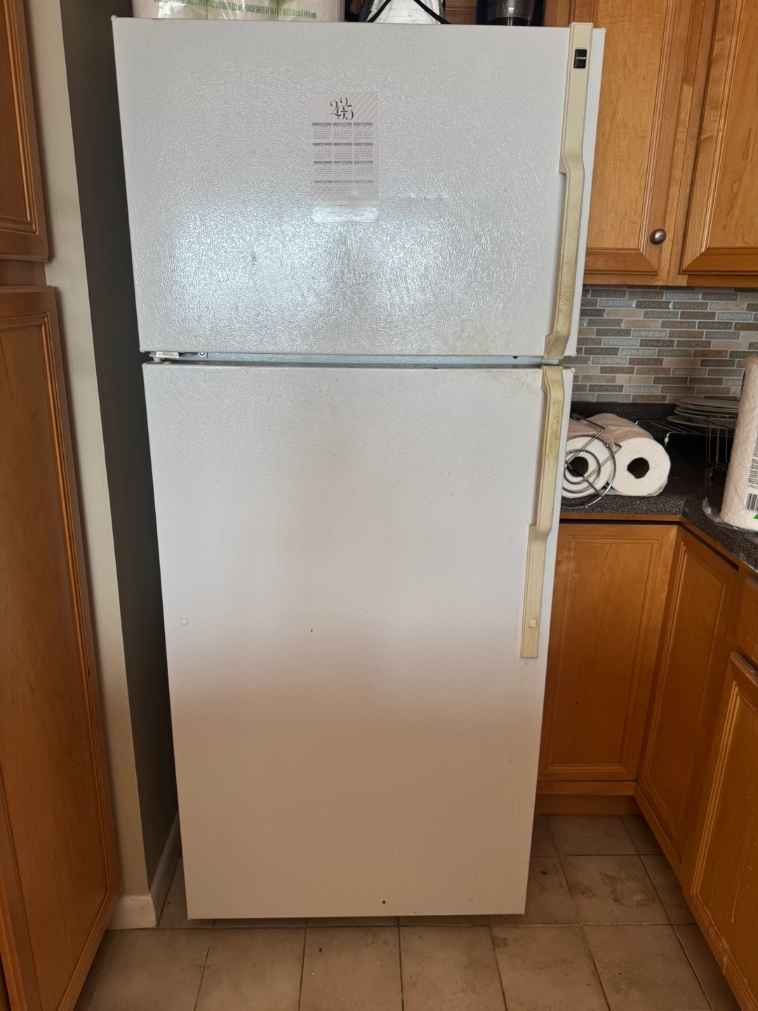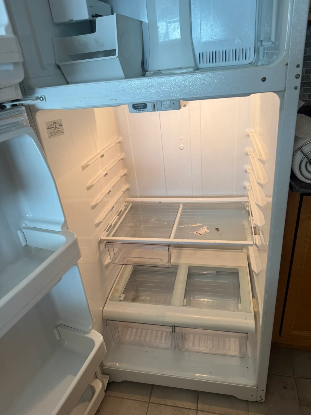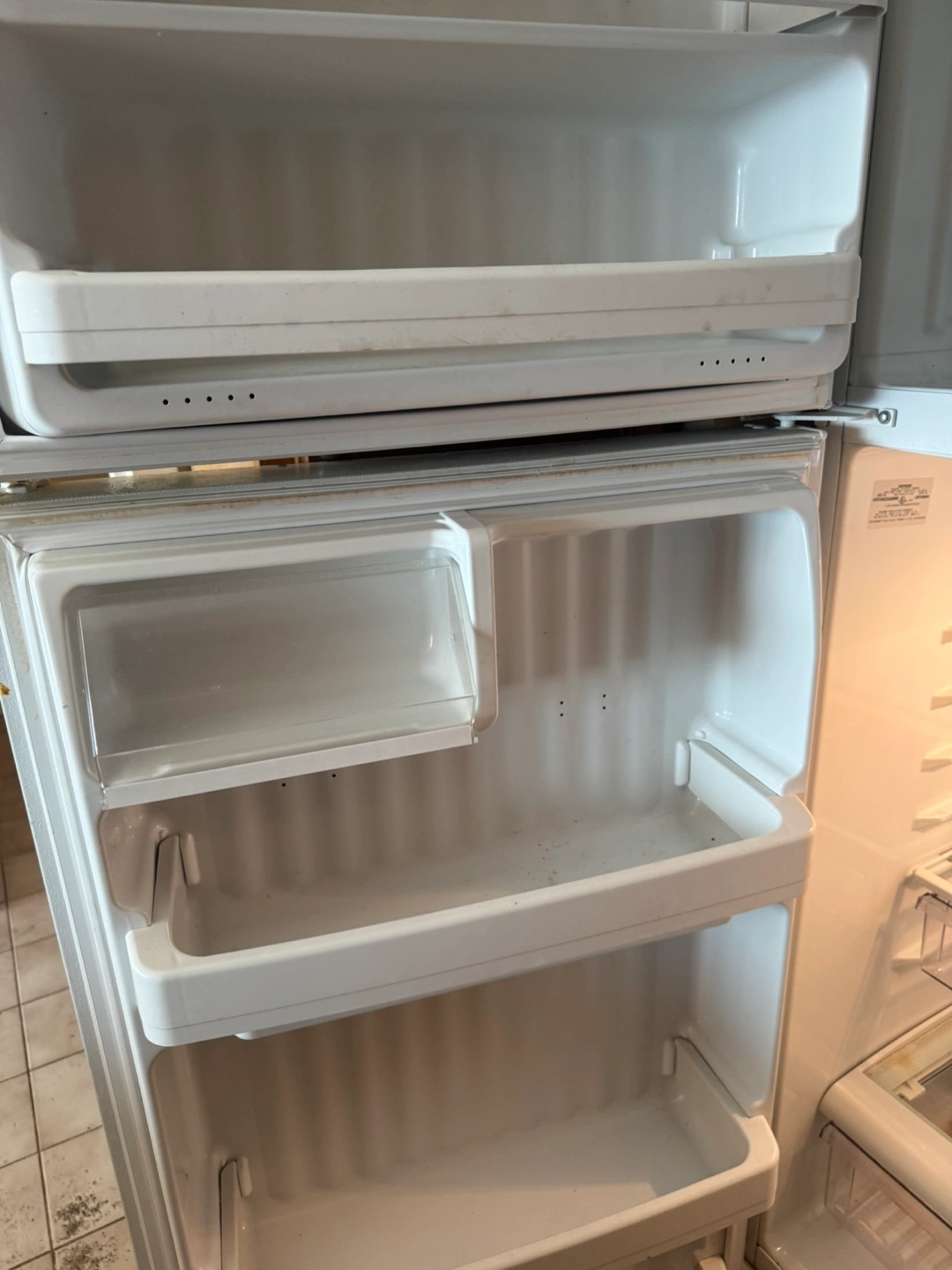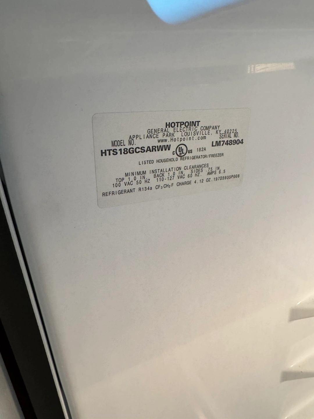 Selling a Hotpoint top freezer refrigerator. The model number is HTS18GSARWW. It's in used condition, but still works great!