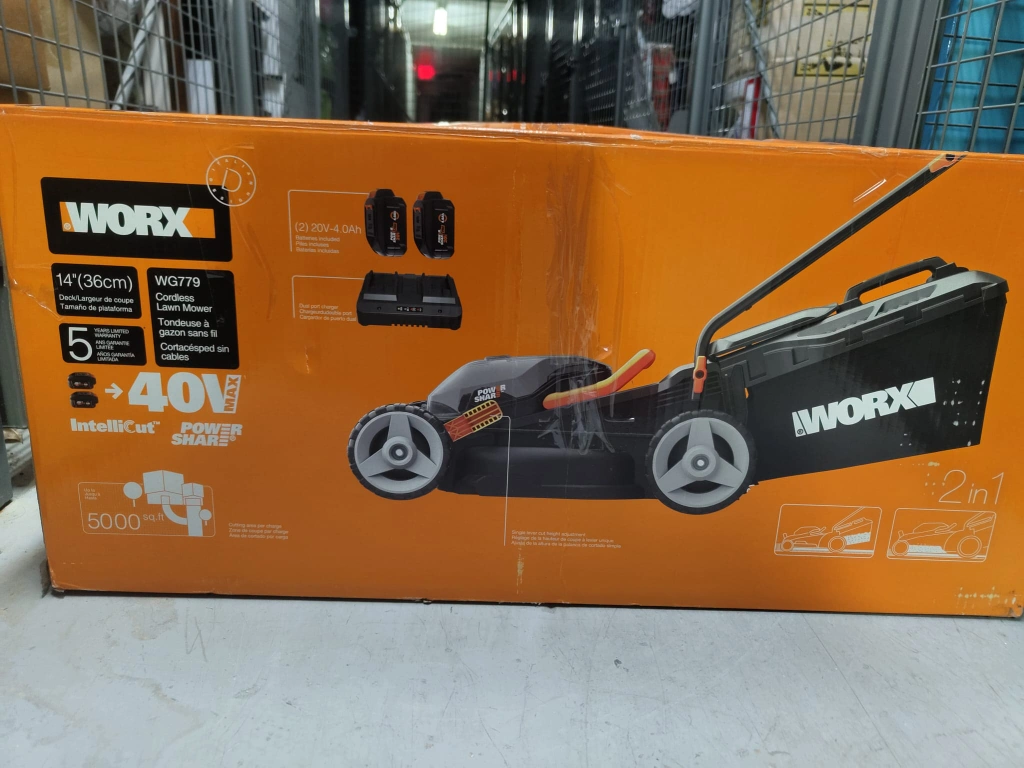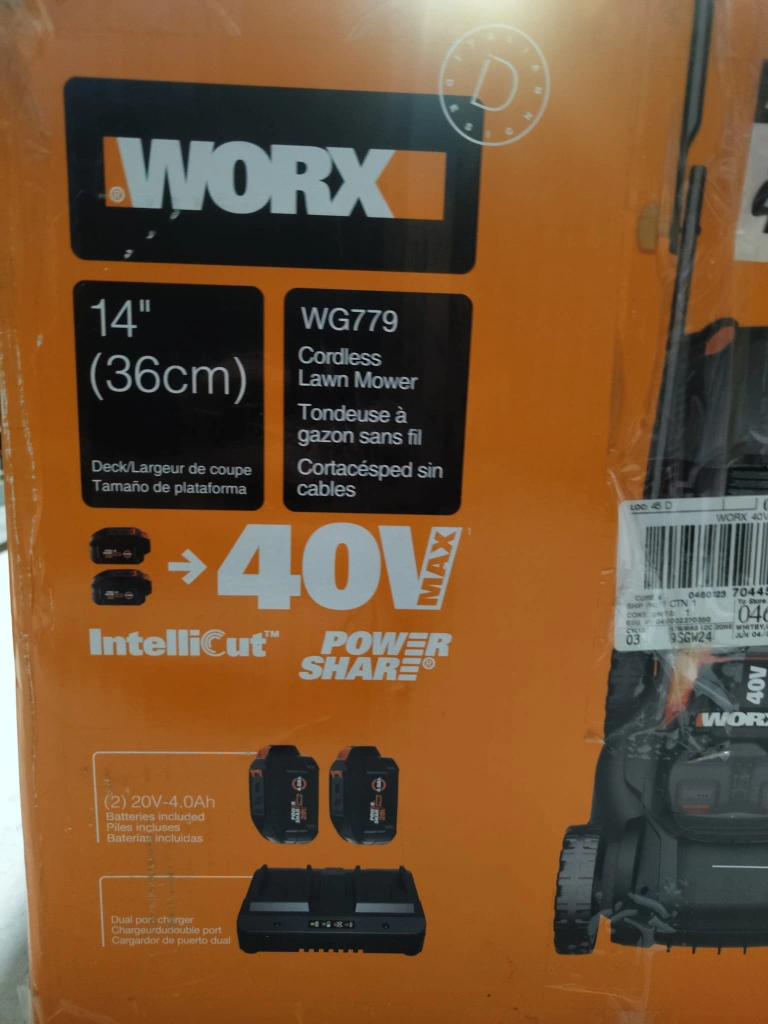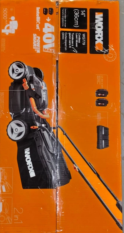 Selling a WORX WG779 14-inch cordless lawn mower. It's in great condition and comes with the box!