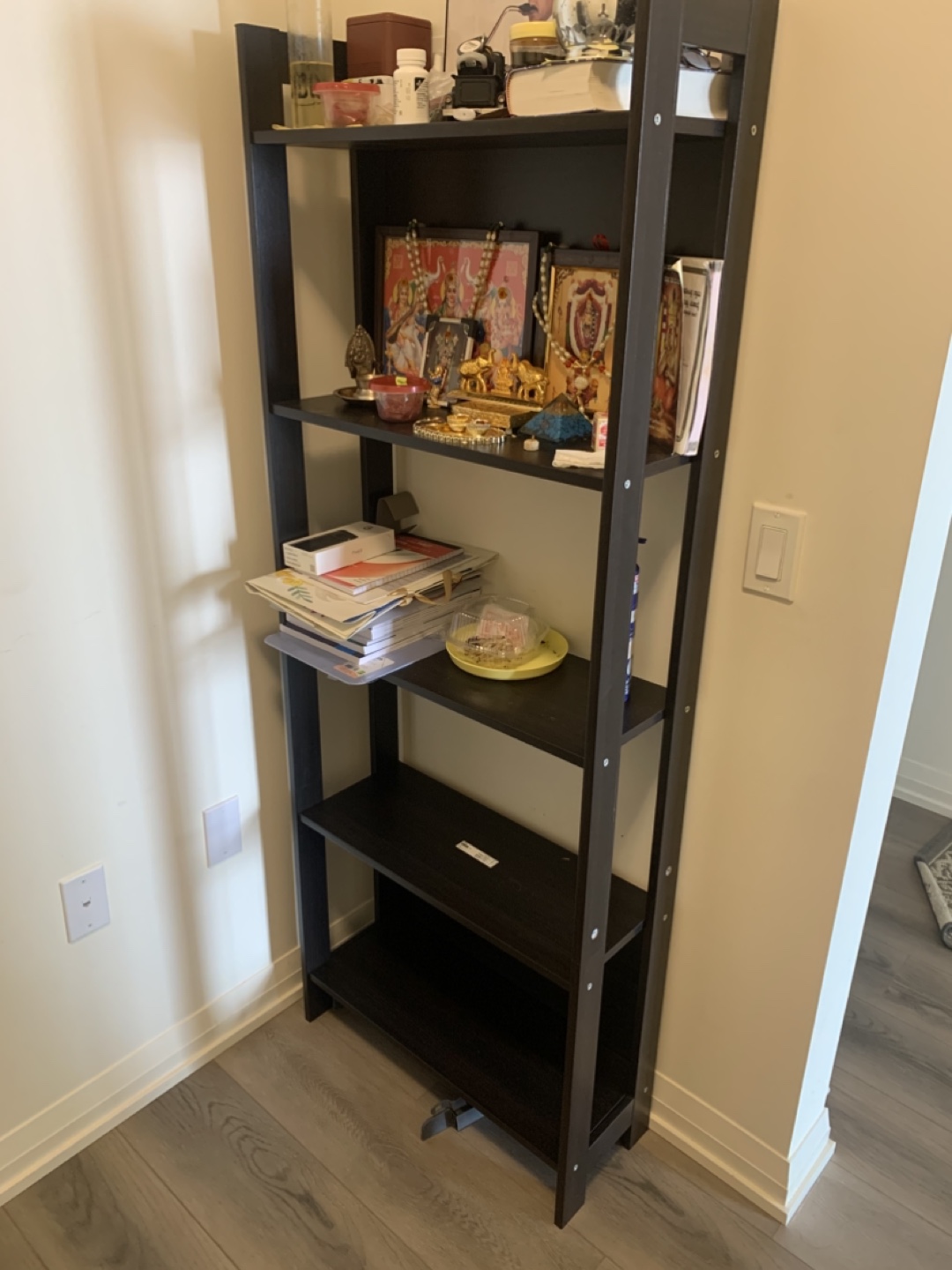 Selling a dark brown bookcase with 5 shelves. It's in great condition and perfect for storing books, decor, or anything else you need to organize! Would be great for any room in your home