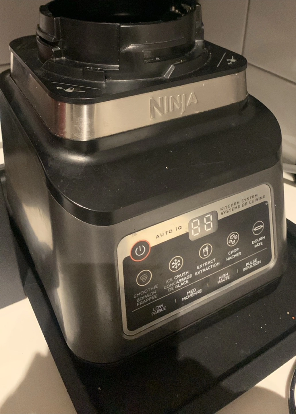 Selling a Ninja Kitchen System with Auto IQ! It's in great condition and ready to help you make smoothies, crush ice, and more. It features multiple settings for different uses such as smoothie, ice crush, extract, chop, and dough pate