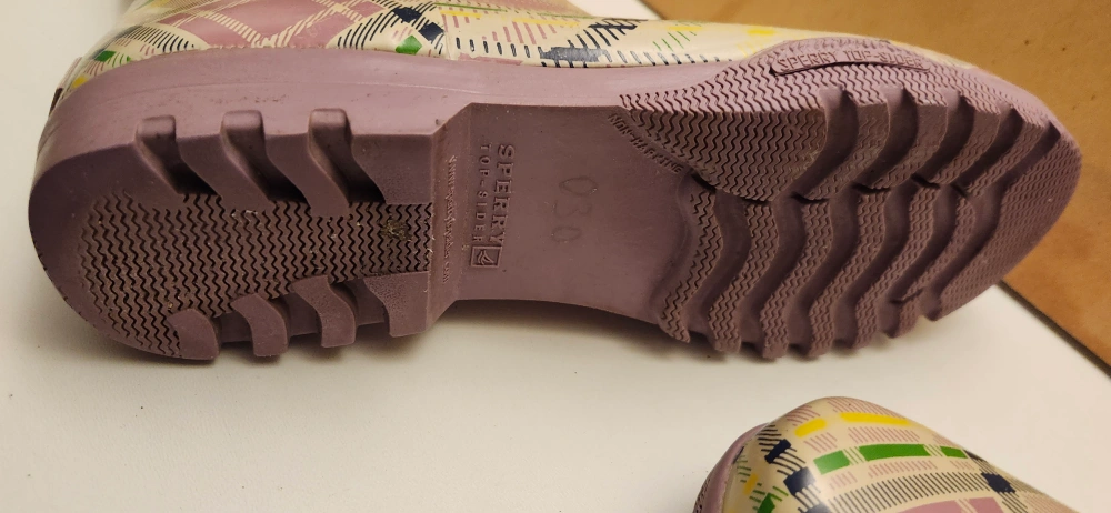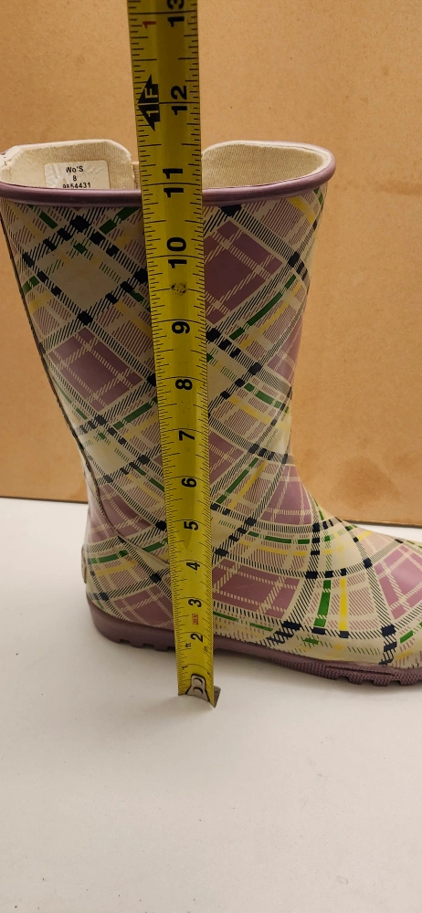 Selling a pair of Totes rain boots in women's size 8 They feature a cute plaid pattern in shades of purple, yellow, and green. The boots are about 12 inches tall. Perfect for rainy days! only pickup no delivery only cash price. meet up on 801 O'Connor drive outside TD Canada Trust bank door