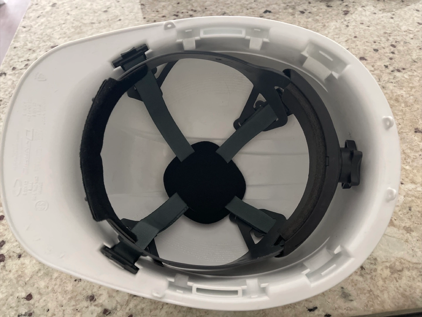 Selling a white hard hat, perfect for construction or any job requiring head protection. It's in good condition and ready to keep you safe on the job site!