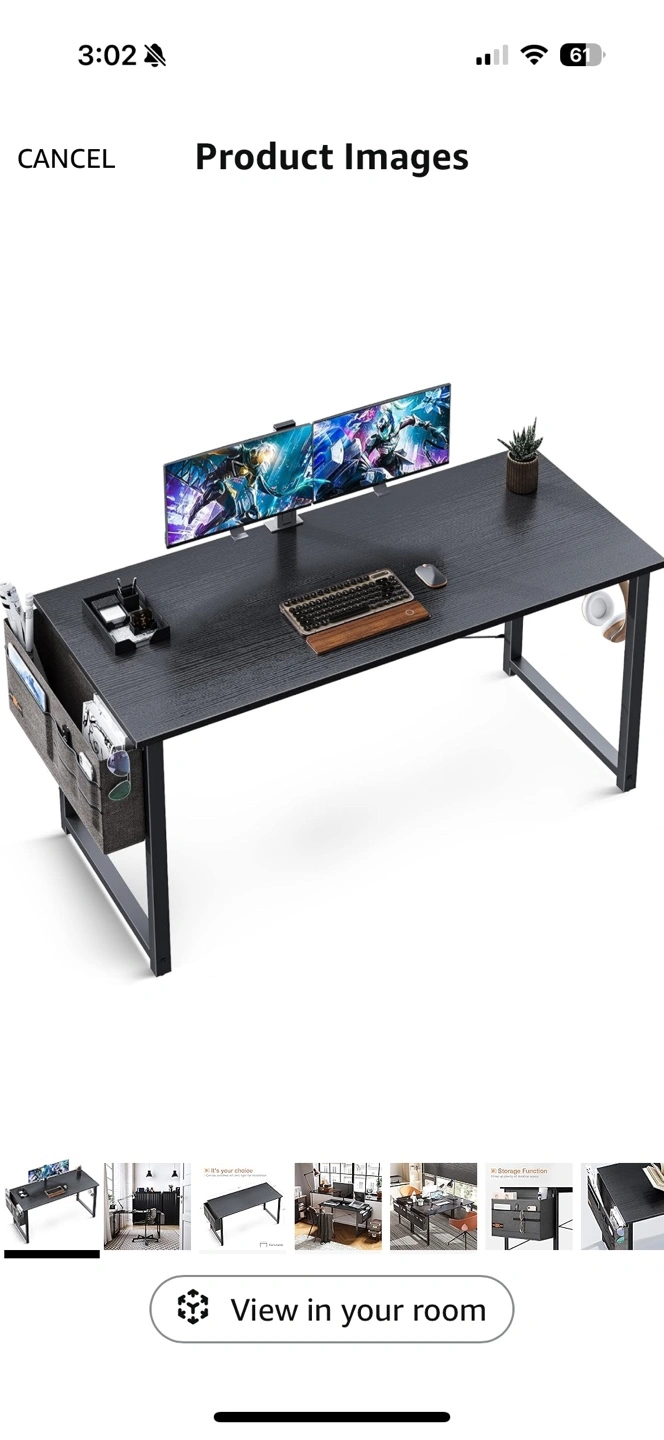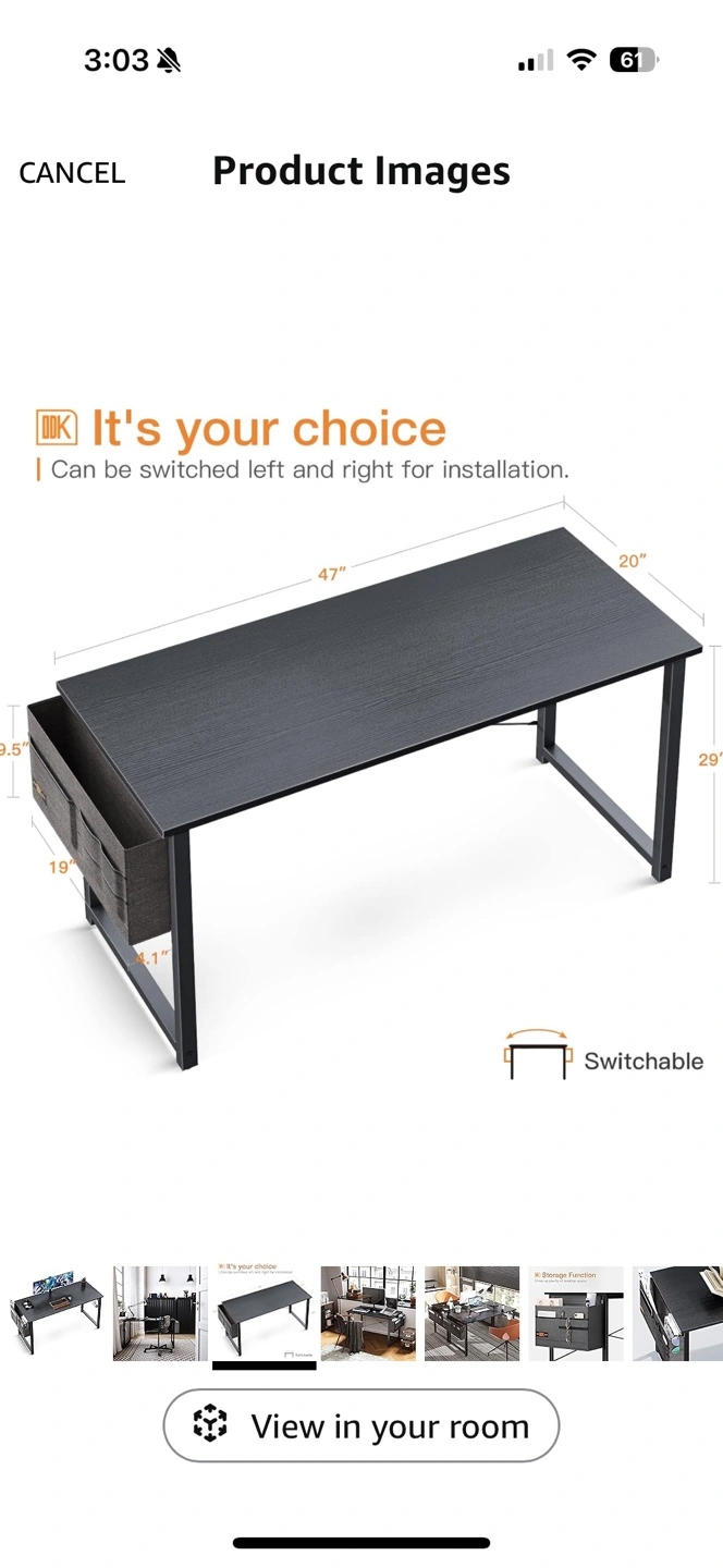 This Odk computer desk is perfect for your home office setup! It features a sleek black finish and a convenient storage bag on the side to keep your essentials organized.