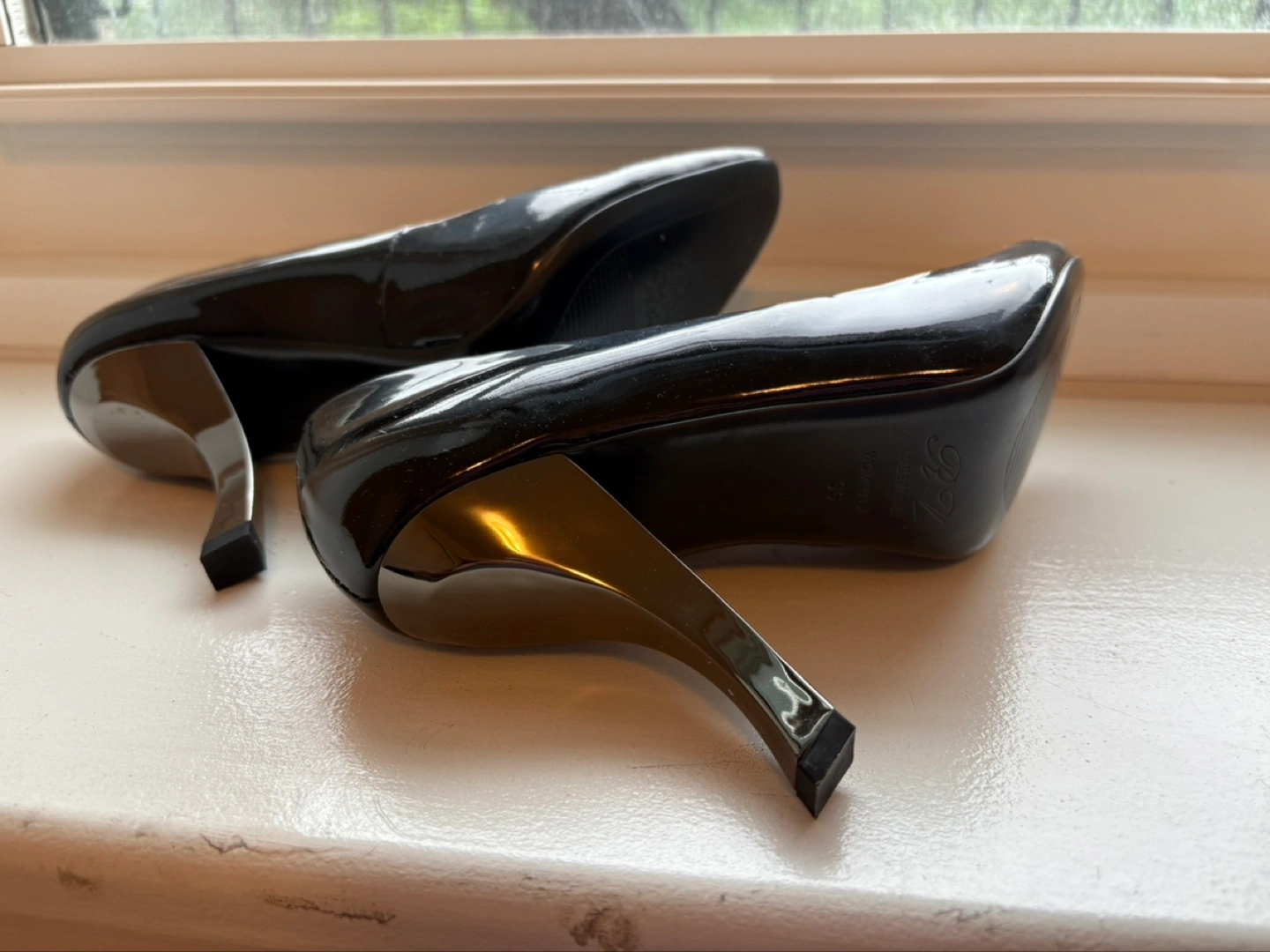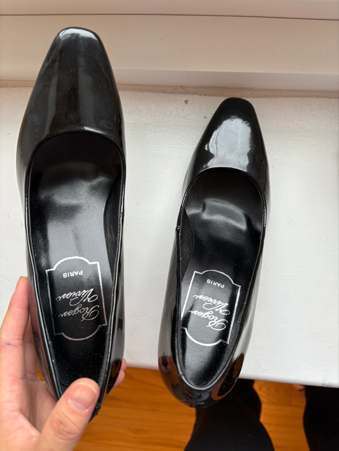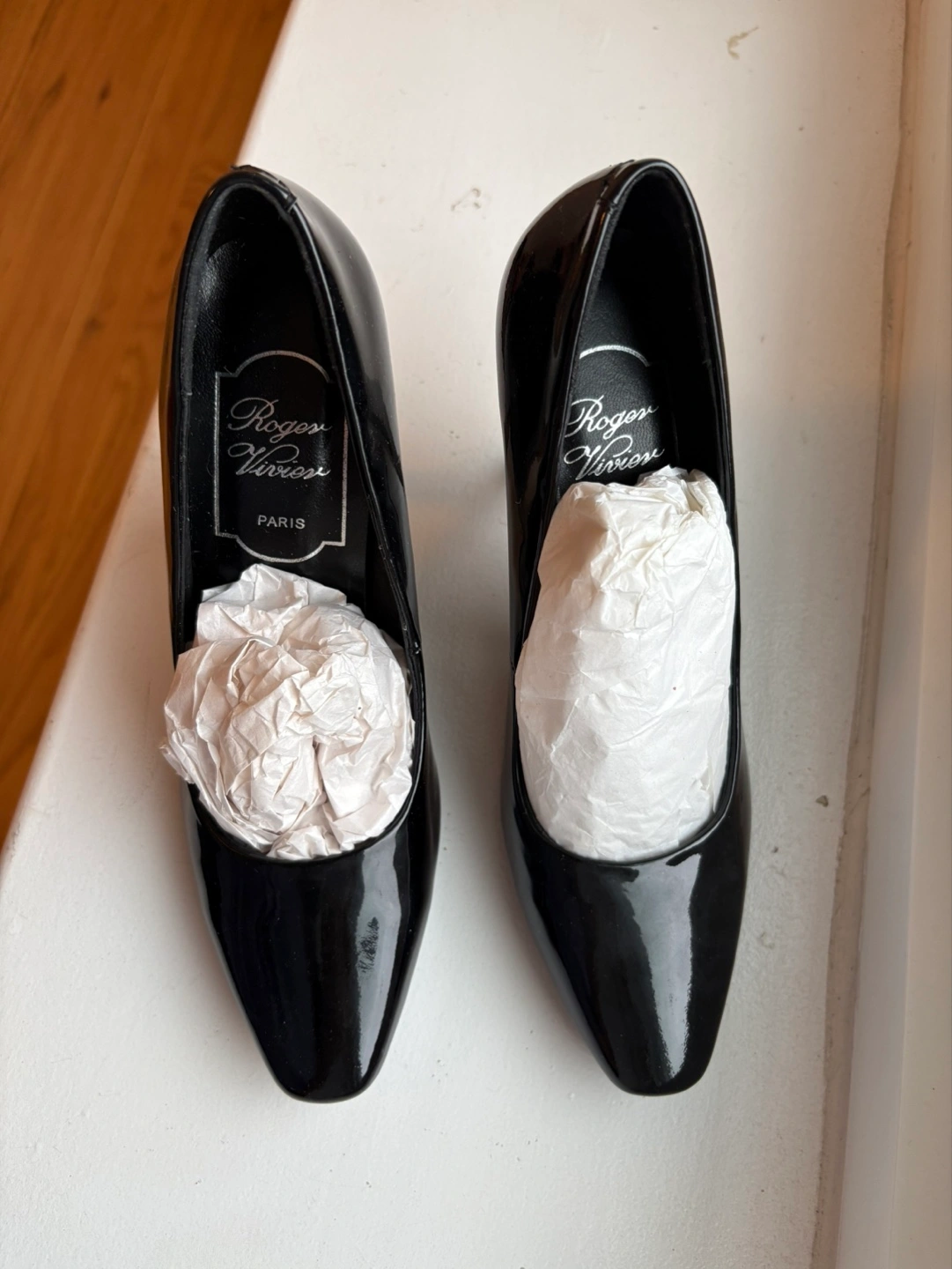 Selling brand new Roger Vivier black patent leather heels in size 36. These elegant heels are perfect for a night out or a special occasion. They feature the classic Roger Vivier design. The sleek black patent leather adds a touch of sophistication to any outfit.