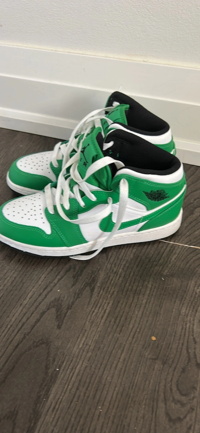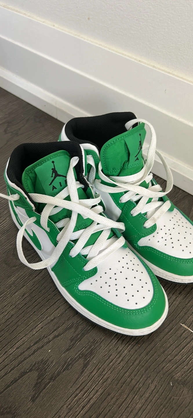 Buy & SellJordan 1 Mid Lucky Green - Size 4YJordan 1 Mid Lucky Green - Size 4Y$65Selling a pair of Jordan 1 Mid sneakers in the Lucky Green colourway! They are a size 4Y, perfect for kids. These shoes are in great condition and ready for a new homeConditionNewWHERE TO MEETPick up at my placeView MapSELLERverifiedRashmiDon Mills711 review0 chats·0 favorites·38 viewsSEND CHAT TO SELLERHi Rashmi! I’m interested in your listing.Hi Rashmi! I’m interested in your listing.Get the Karrot app to chatSign In to chat