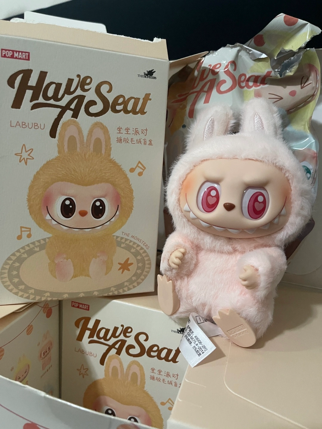 Selling a POP MART DADA Labubu Have A Seat plush figure! It's in a new condition and comes with an opened original box. This adorable collectible is perfect for any fan of The Monsters series! Don't miss out on this cute addition to your collection