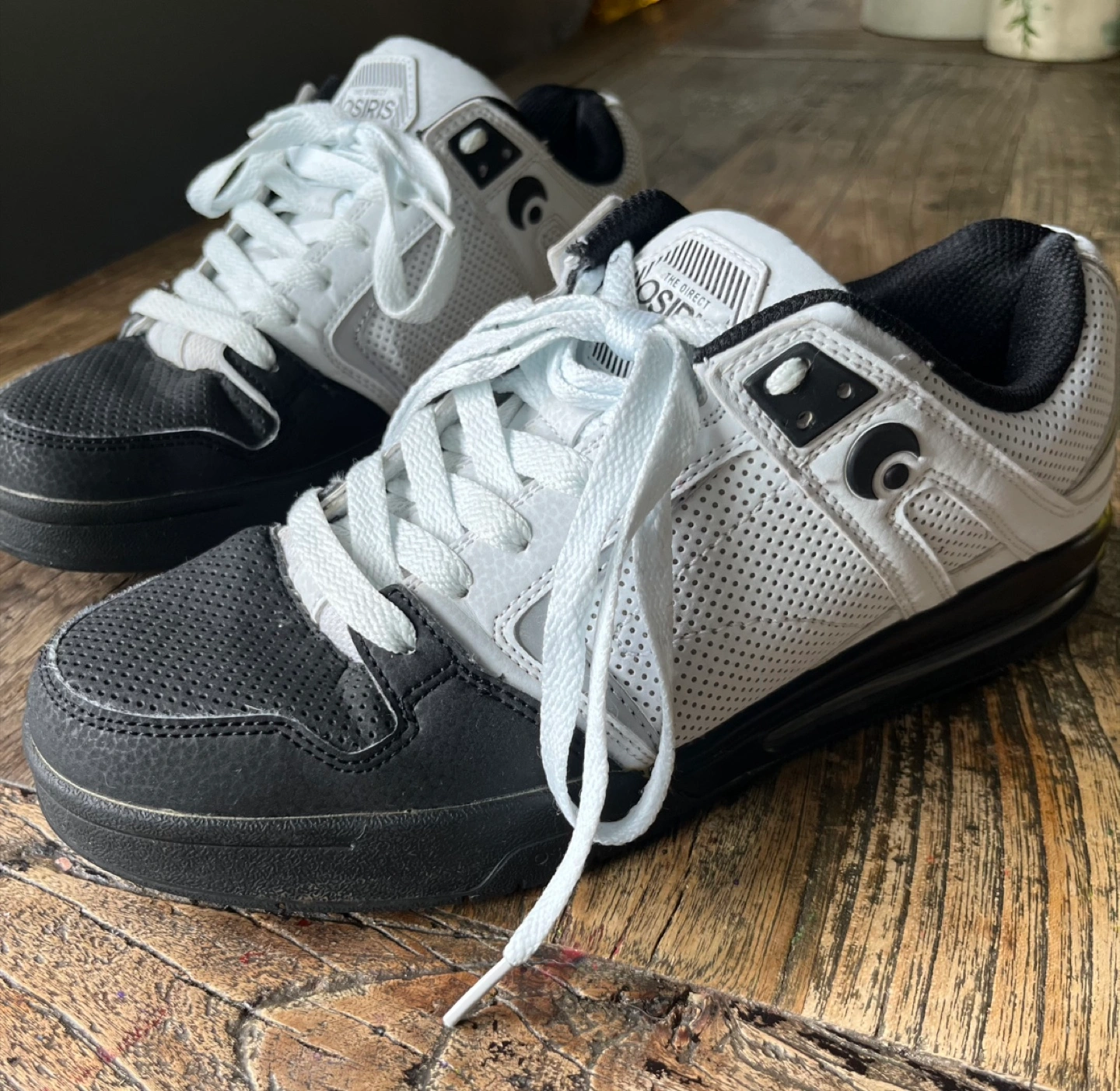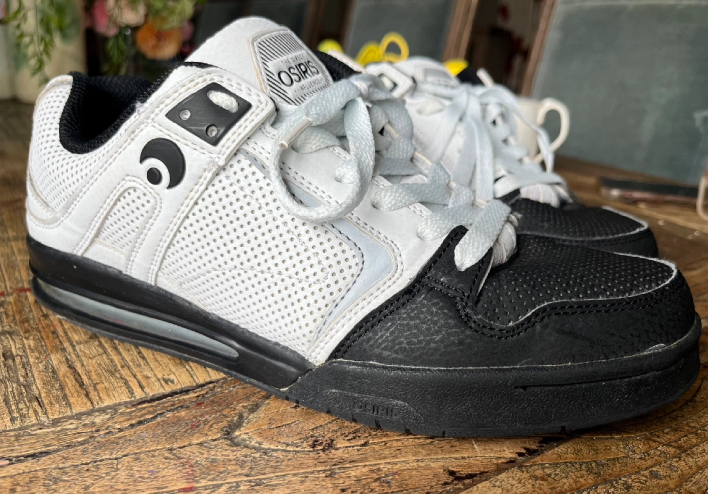 Osiris skate shoes in a black and white colourway, perfect for hitting the skate park or just cruising around town. Size 10 men’s. EUC. They are in great condition and ready for a new owner!