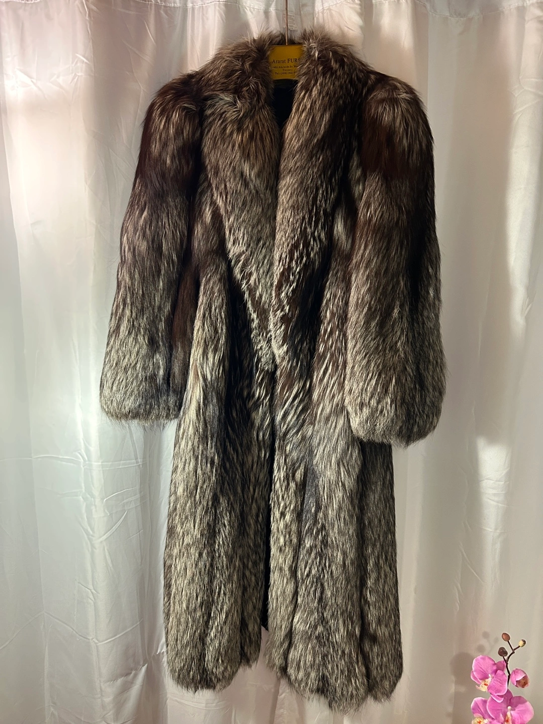 This luxurious coat features full, thick fox fur with beautiful natural tones and texture. The craftsmanship is exceptional — perfect for special occasions, winter outings, or adding a touch of timeless style to your wardrobe.