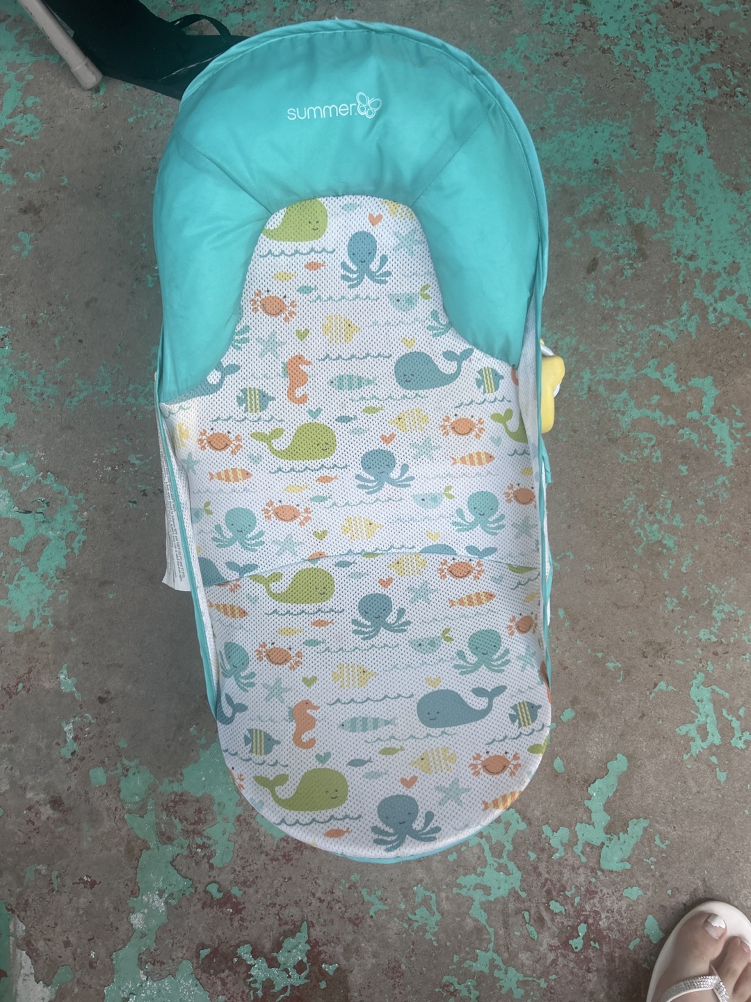 Selling a Summer Infant bath seat. It's in great condition and ready for a new home. Perfect for making bath time easier and more enjoyable for your little one! The seat features a supportive design and a fun ocean-themed pattern.