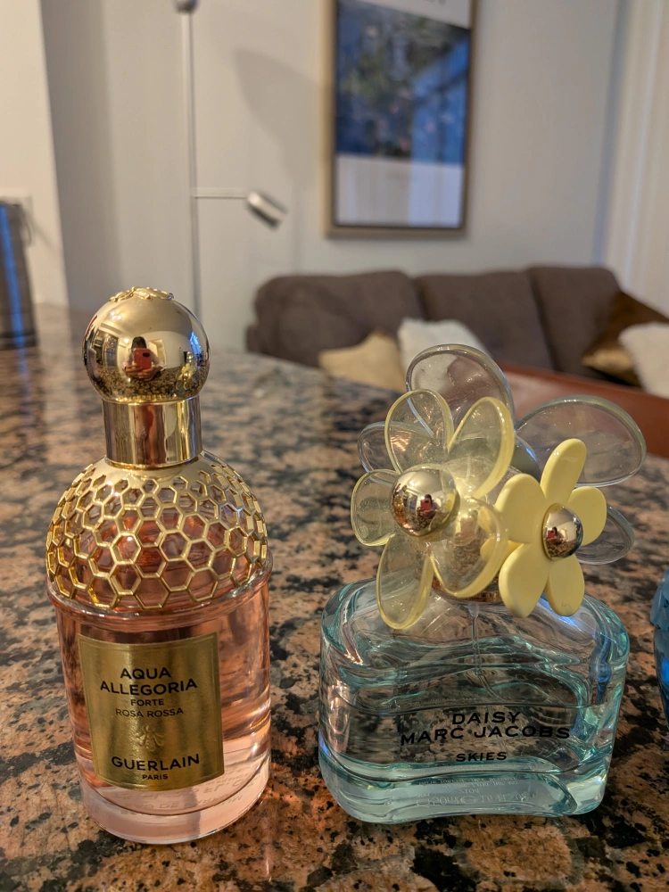 $450 value: $100 for all 5 Perfumes - no price negotiation because you will not find a better price anywhere else πŸ™πŸ» - Guerlain Aqua Allegoria Forte Rosa Rossa - Marc Jacobs Daisy Skies - Marc Jacobs Daisy Dream - Zara Nude Bouquet Blush - Zara Fashionably London Elixir