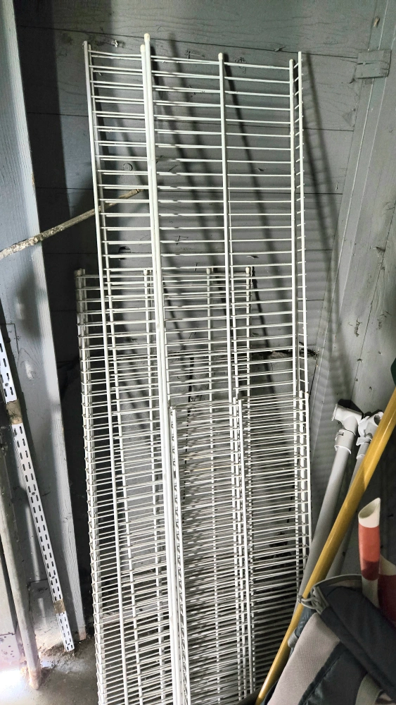 Pre-owned closet maid wired organizer racks in white. Several sizes