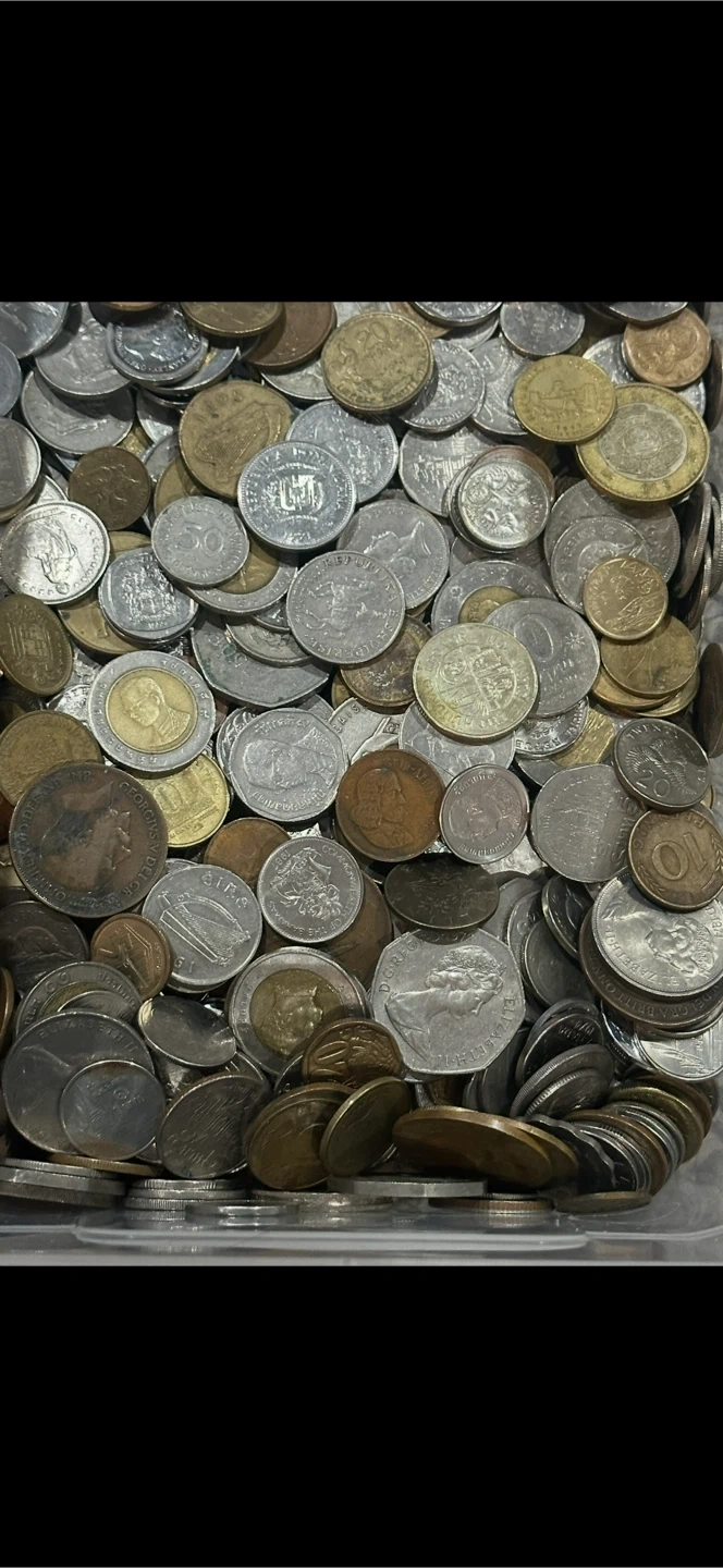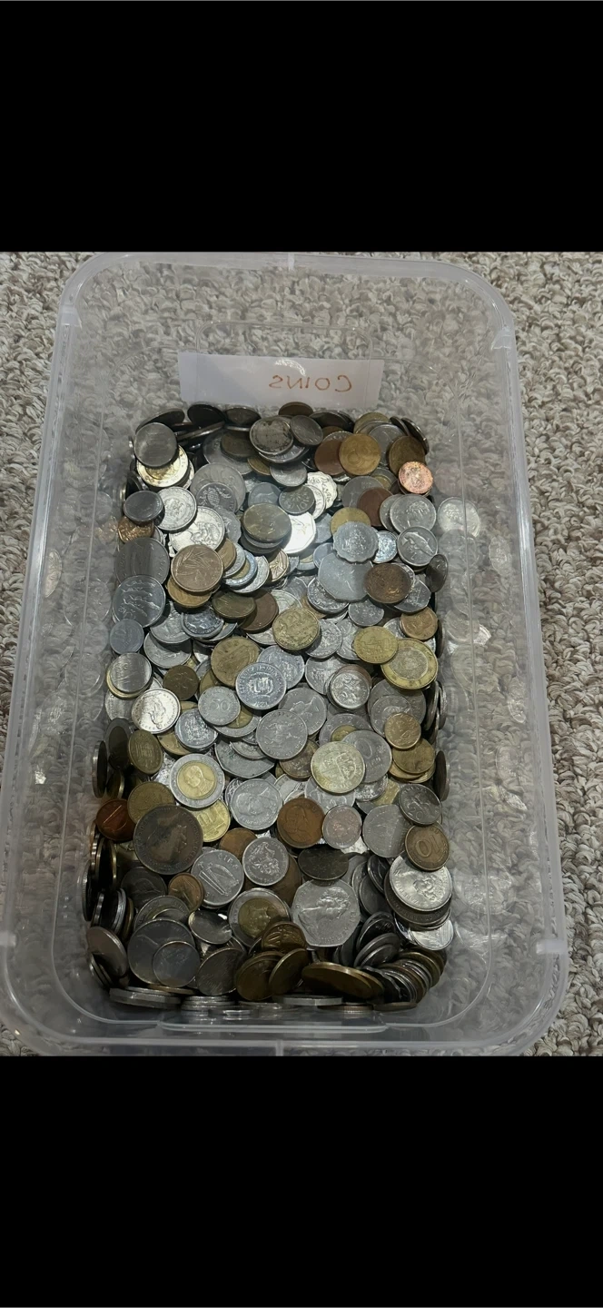 This is a large collection of assorted coins from around the world. The container is full of various denominations and currencies. These coins offer a glimpse into global numismatics. Great for collectors or anyone interested in world currency! I have the lot separated by country so just message me what country you're in interested in and I will reply with photos and information. Countries available will be listed at the end.