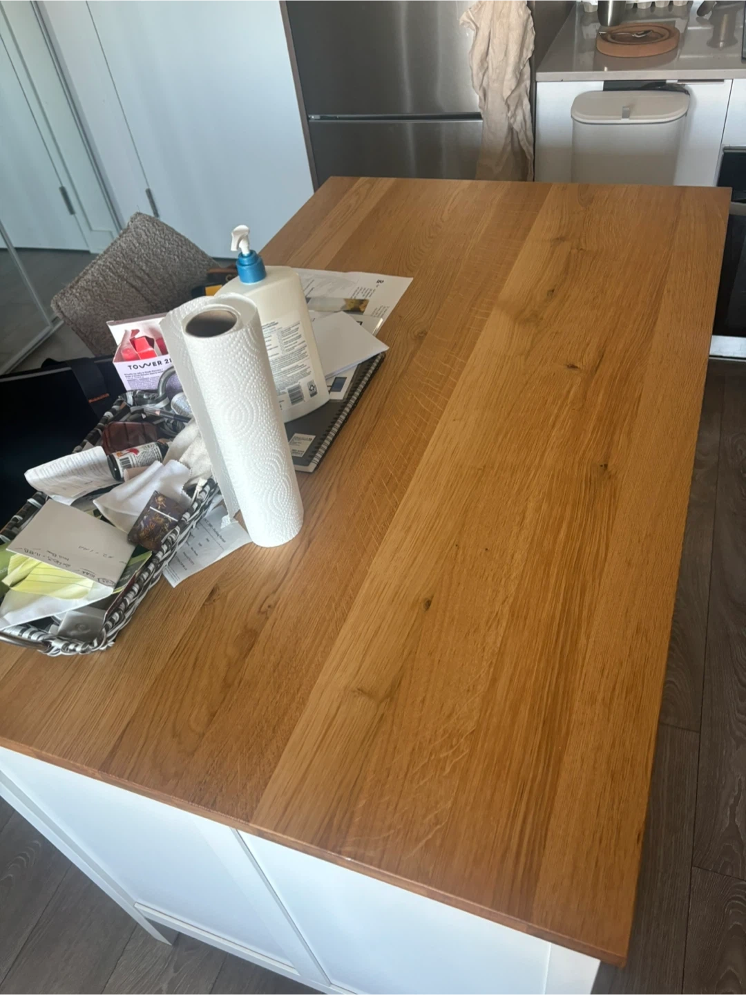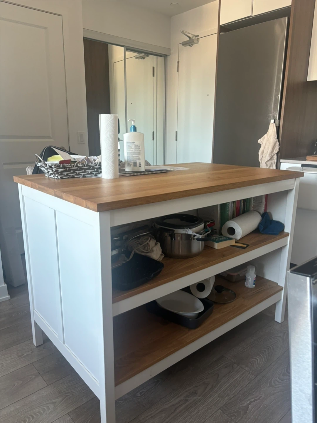 White Kitchen Island with Wooden Top