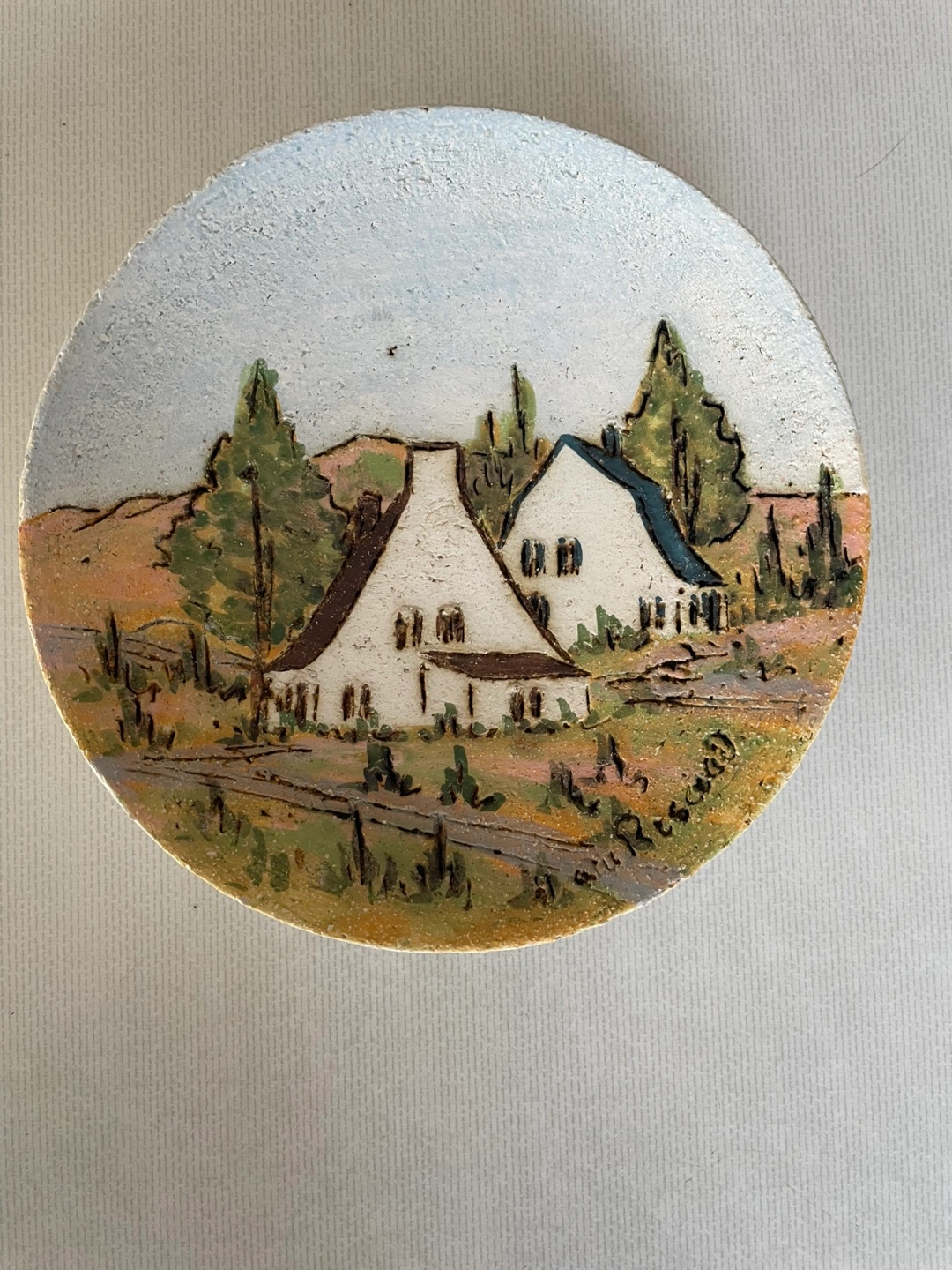 Hubert du Roscoat collector wall plate.. Signed, rough textured surface.