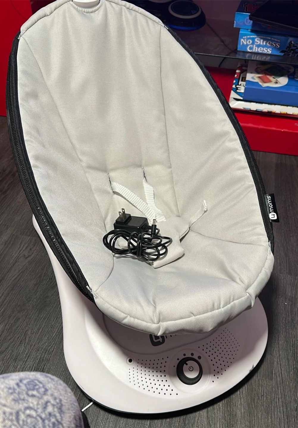 Selling a 4moms MamaRoo baby swing! It's in great condition and comes with the charger. This swing is designed to mimic the natural motions parents use to comfort their babies. It has multiple speeds and sounds to soothe your little one
