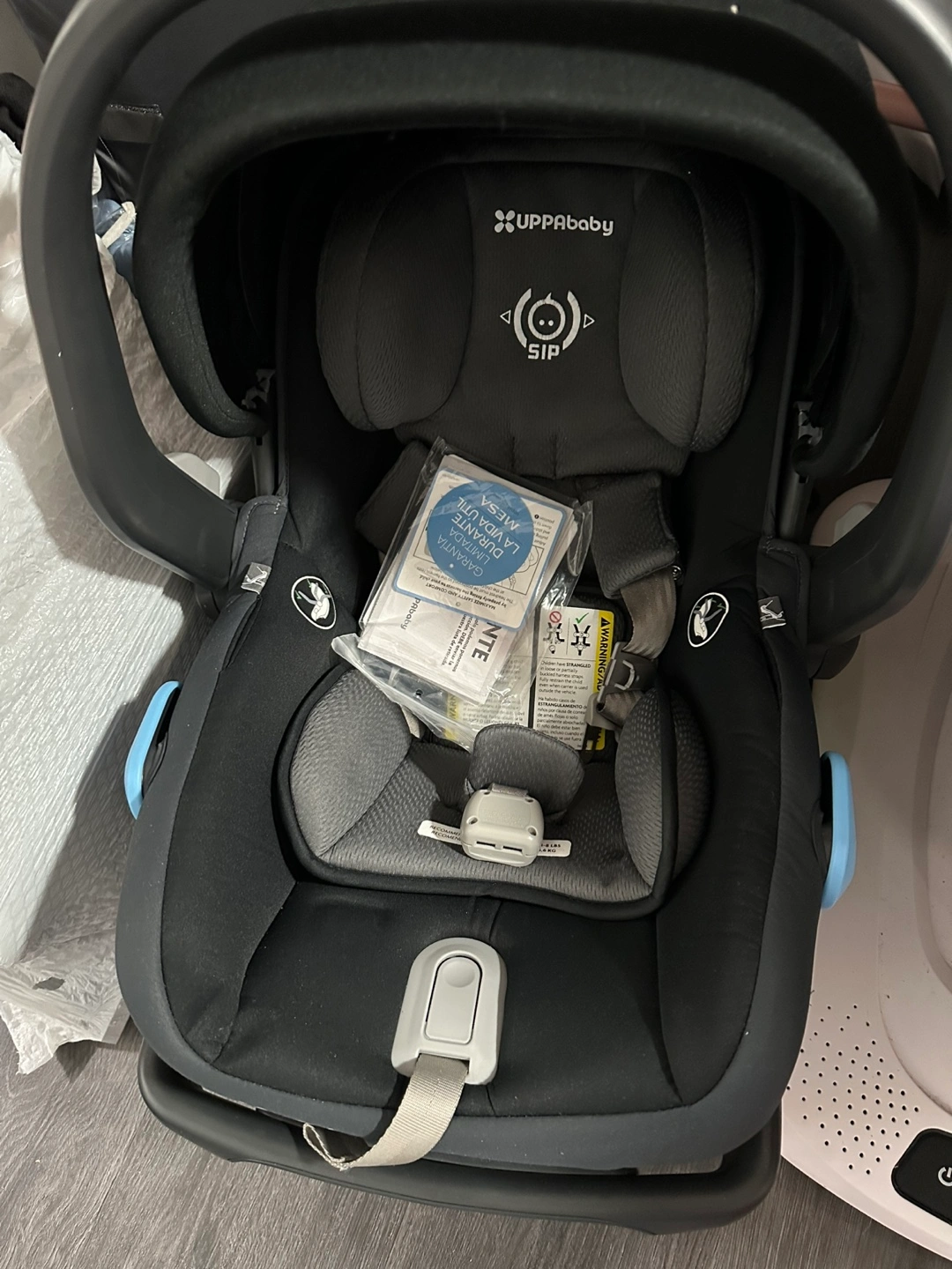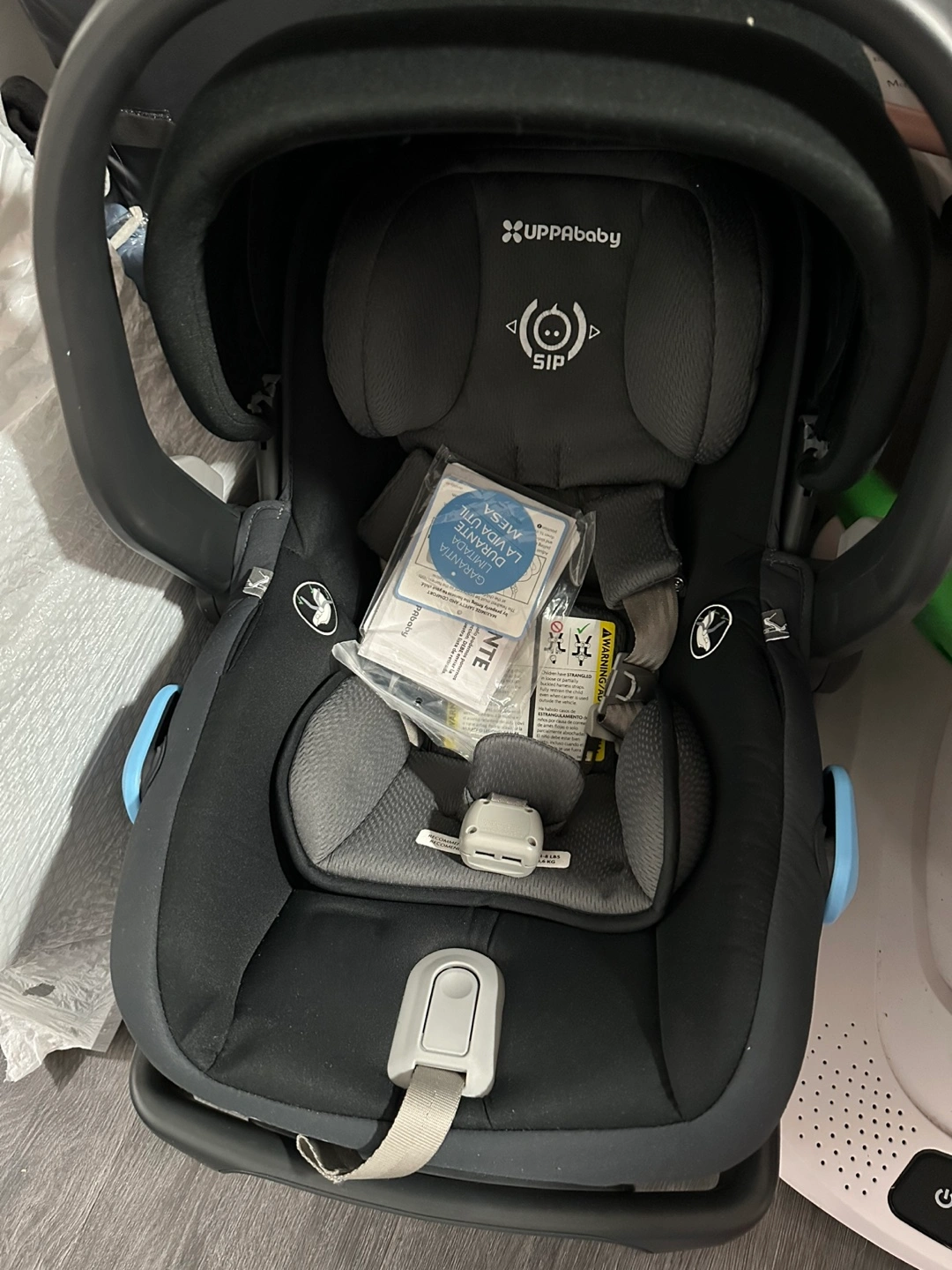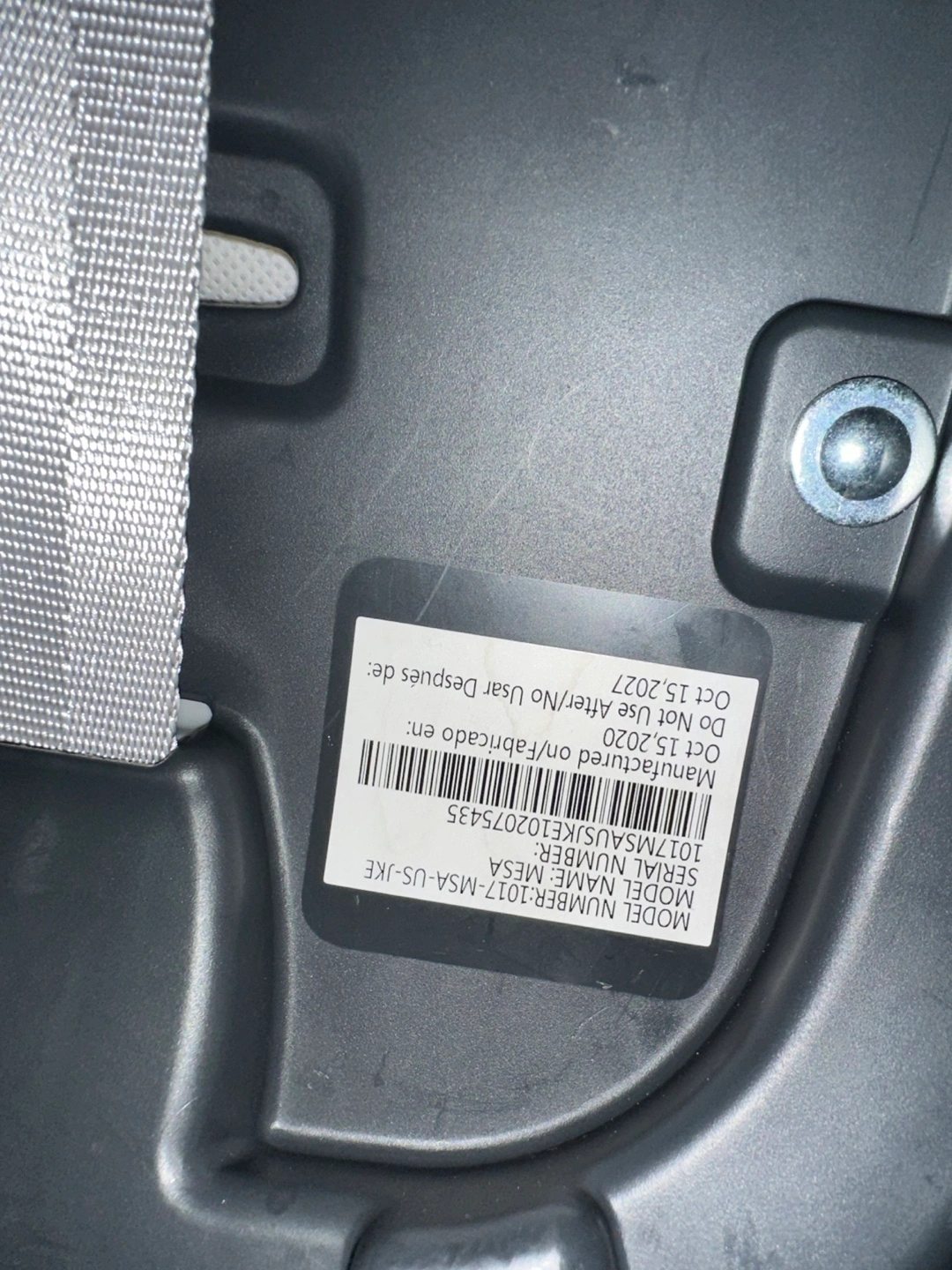 Selling an UPPAbaby MESA infant car seat! It's in great condition and ready for a new little one. The label shows it was manufactured on October 15, 2020, and should not be used after October 15, 2027 in a car